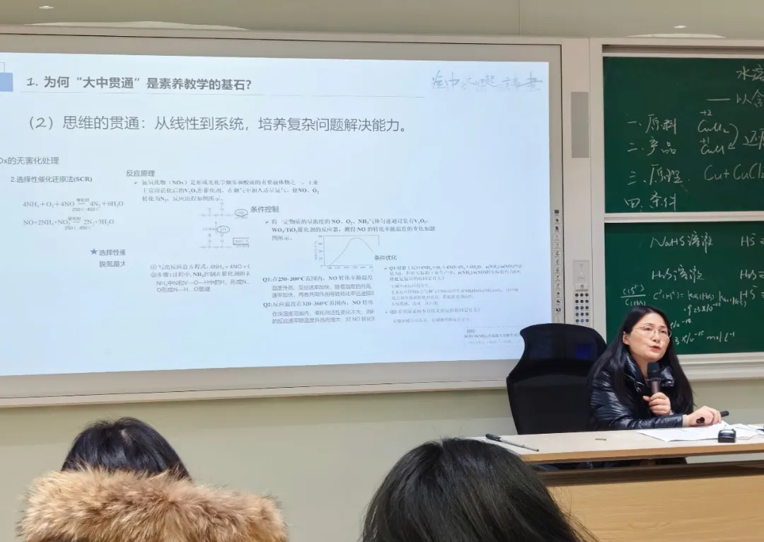在此基础上,工作室主持人钱华作《为素养而教:新课标下化学课堂深度变革的多维路径》专题讲座,结合工作室在“大中贯通、跨学科实践”中的实践经验,融合当下最新的数智技术,系统阐述了化学课堂从“传统课堂融合”向“数智赋能共生”的迭代升级路径。她认为名师工作室之间的联动不应止步于校际交流,更要打造成为“资源共享、智慧共生”的化学教育教研高地,这与此次省级研讨活动中数智赋能的理念不谋而合。