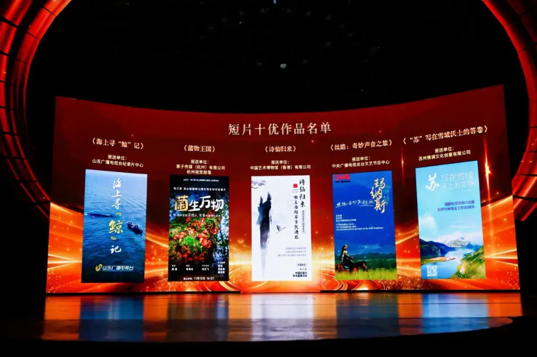 在本届评选活动中,山东广播电视台报送的人物纪录片栏目《五洲四海山东人》荣获栏目类十佳作品;纪录片《海上寻“鲸”记》荣获短片类十优作品;系列纪录片《大汶口》荣获系列片类好作品;短视频《人间三万天:你的样子》荣获微纪录类好作品。