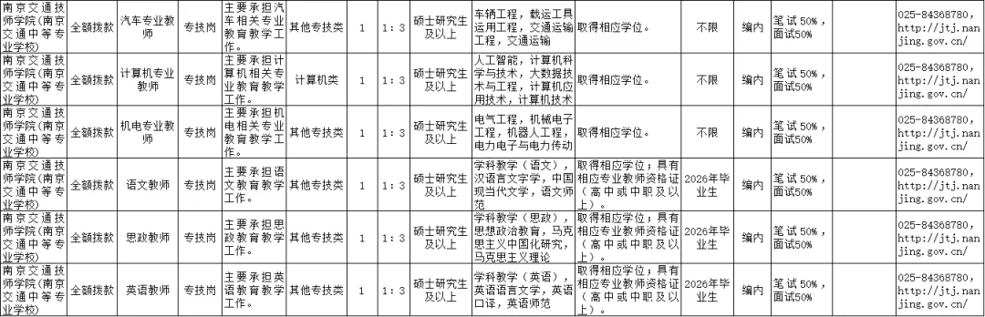 招聘单位政策咨询:联系电话请见《南京市2026年事业单位统一公开招聘工作人员岗位信息表》(附件1);