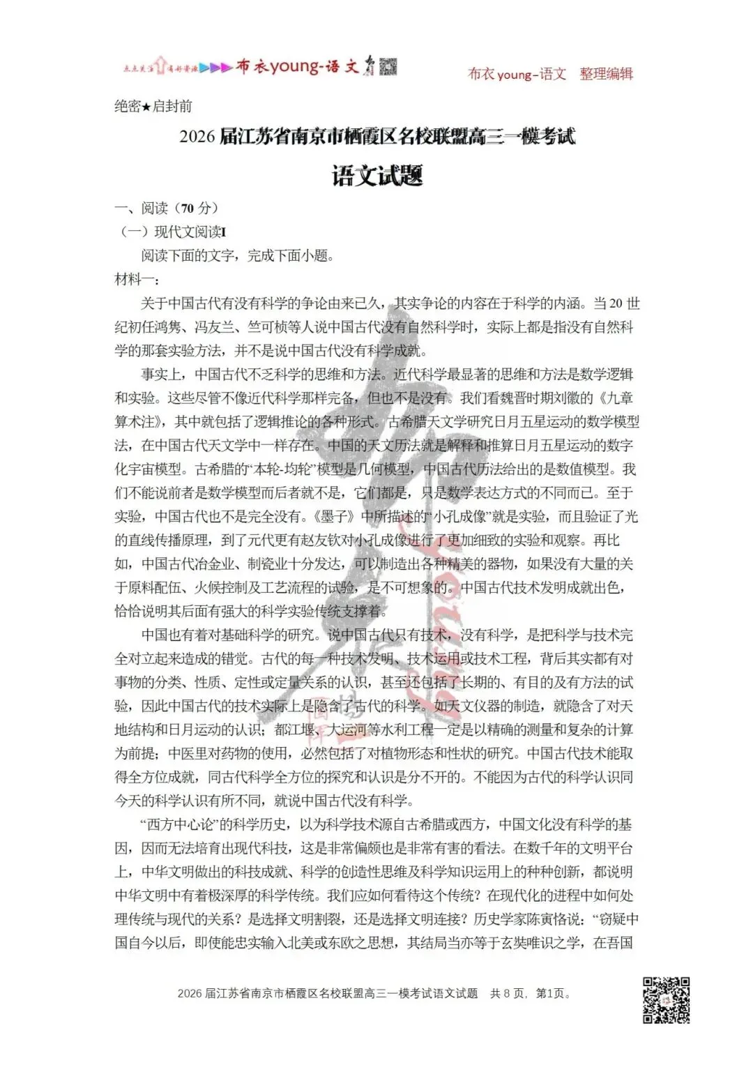 2026届江苏省南京市栖霞区名校联盟高三一模考试