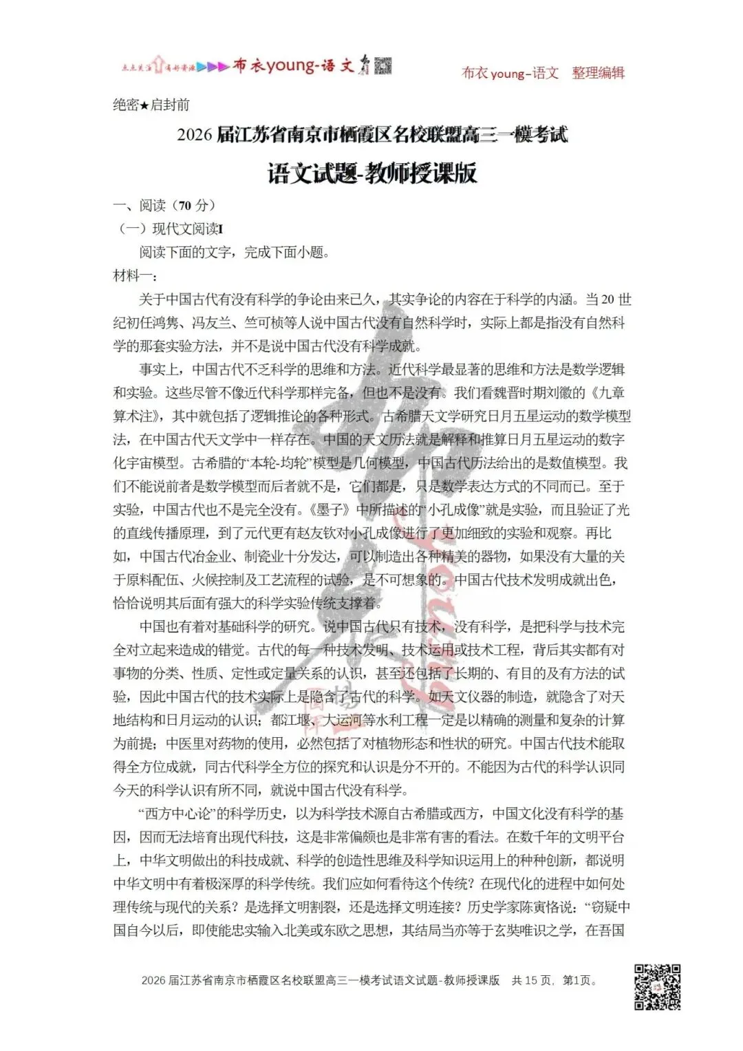 1.下列对材料相关内容的理解和分析,正确的一项是()(3分)