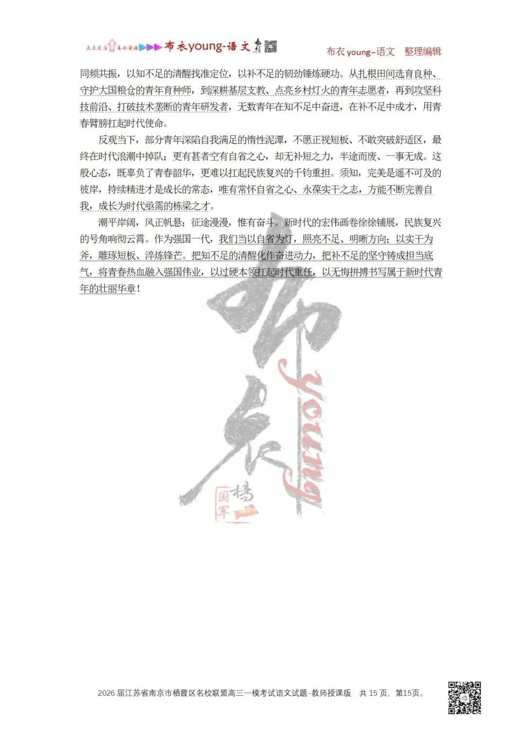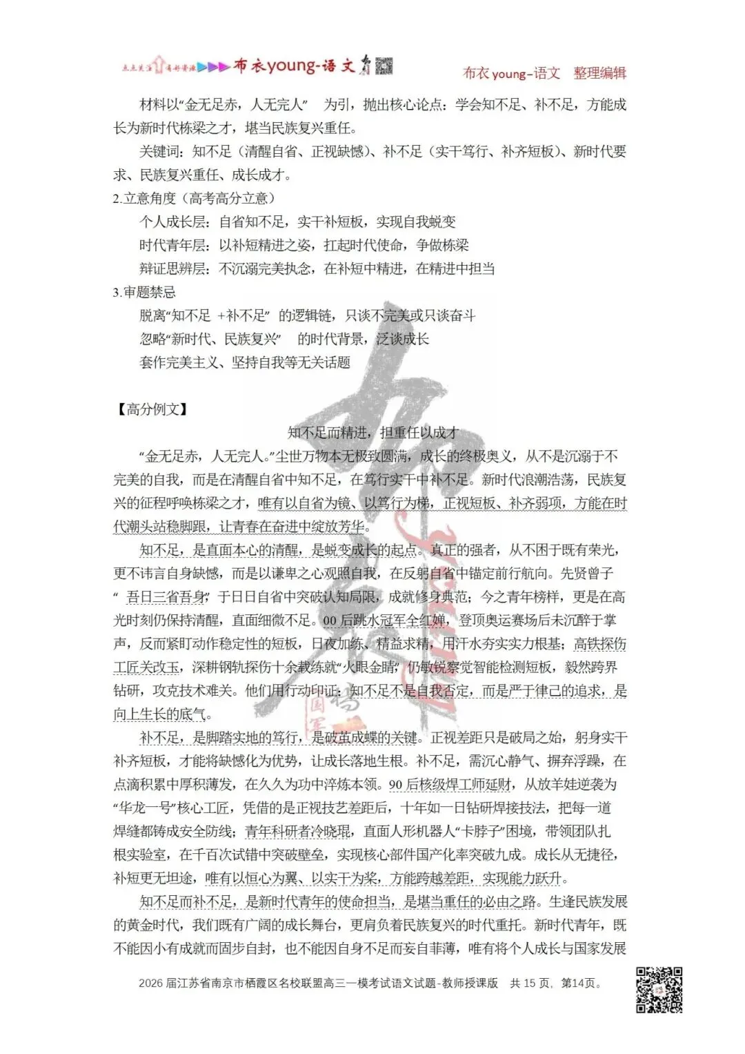 “金无足赤,人无完人。”但我们要学会在知不足中补不足。只有这样,我们方能成长为符合新时代要求、堪当民族复兴重任的栋梁之才。