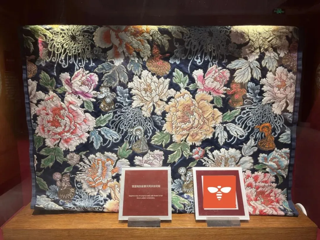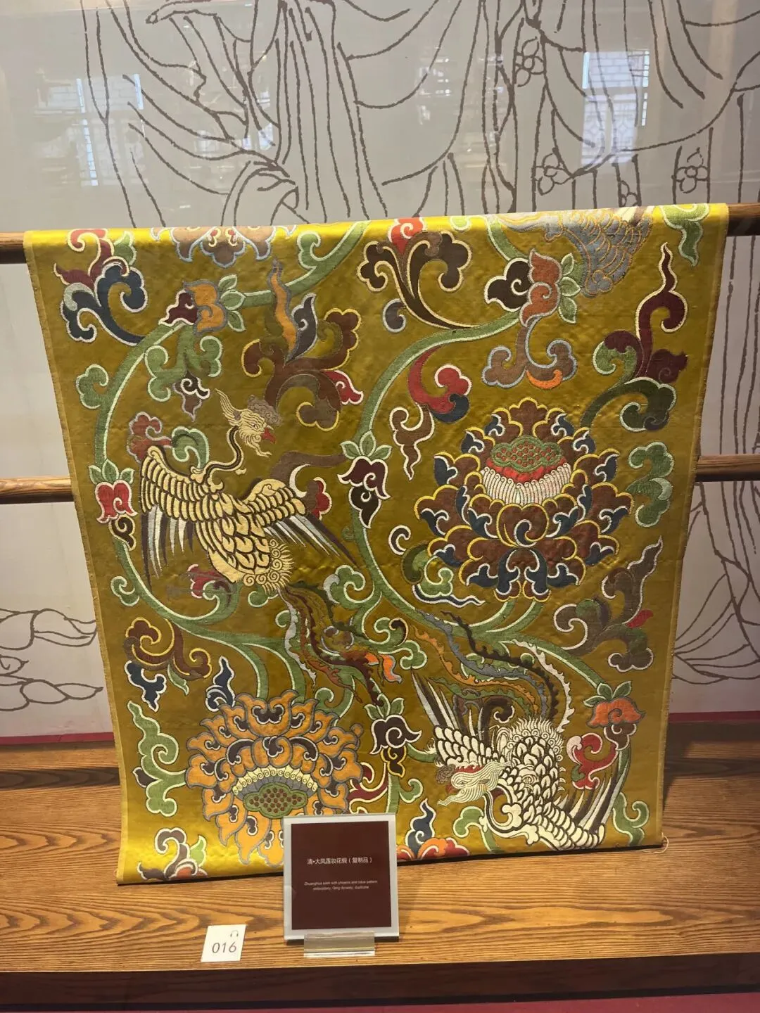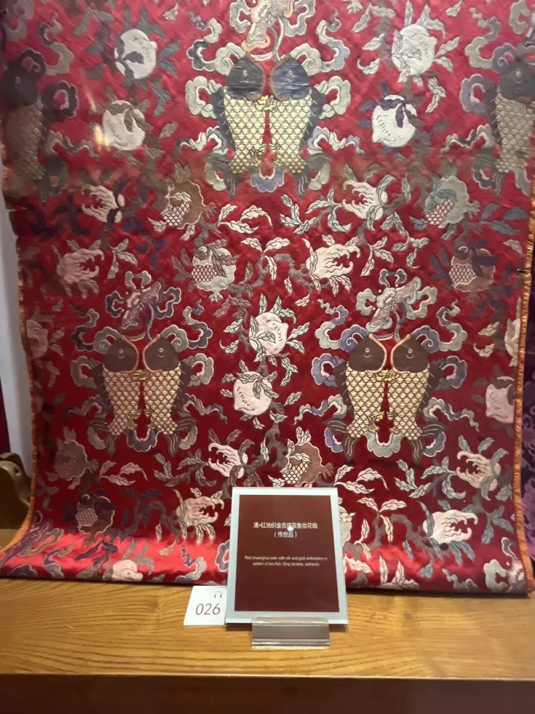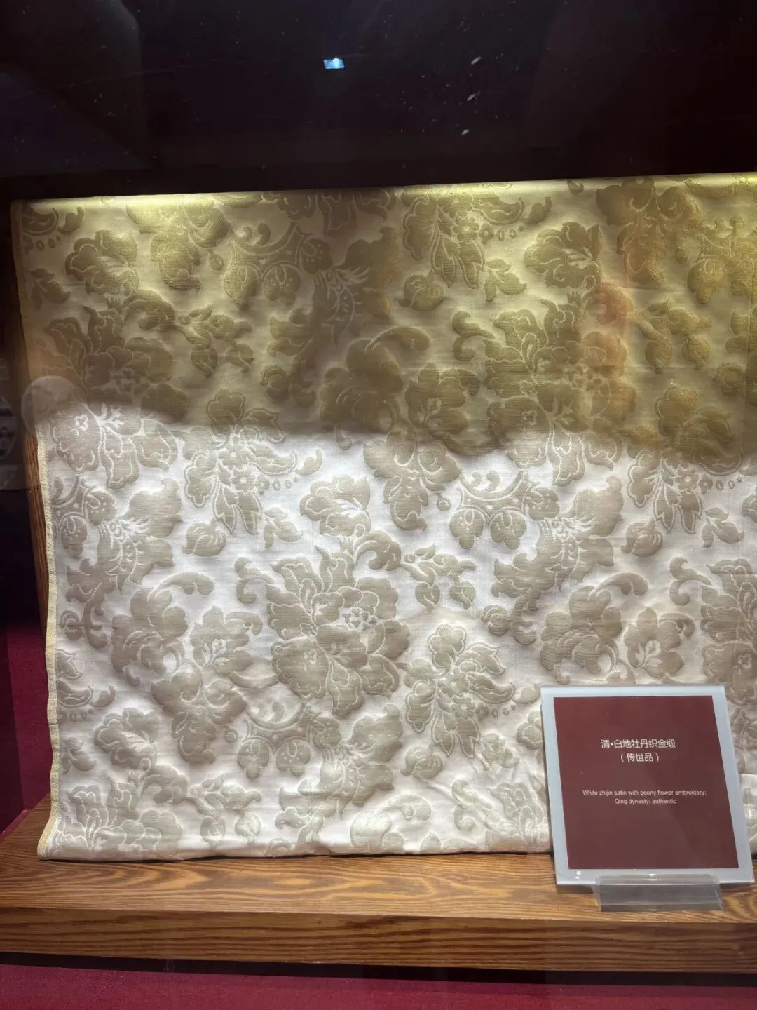 最后是上机织造。云锦被誉为 “锦中之冠”,其织造使用巨大的传统木质大花楼织机(花楼机),机身长约5.6米、高逾4米。织造过程需要两人密切配合: