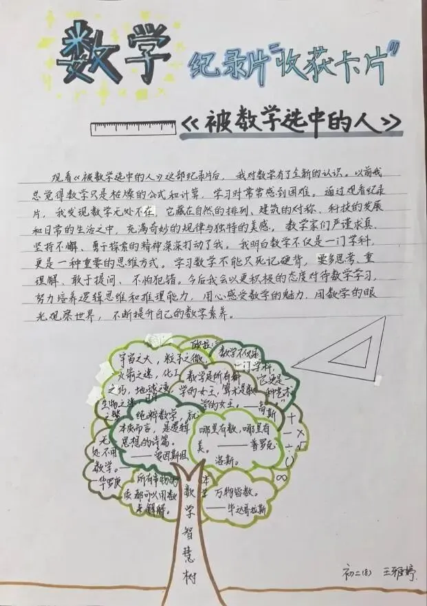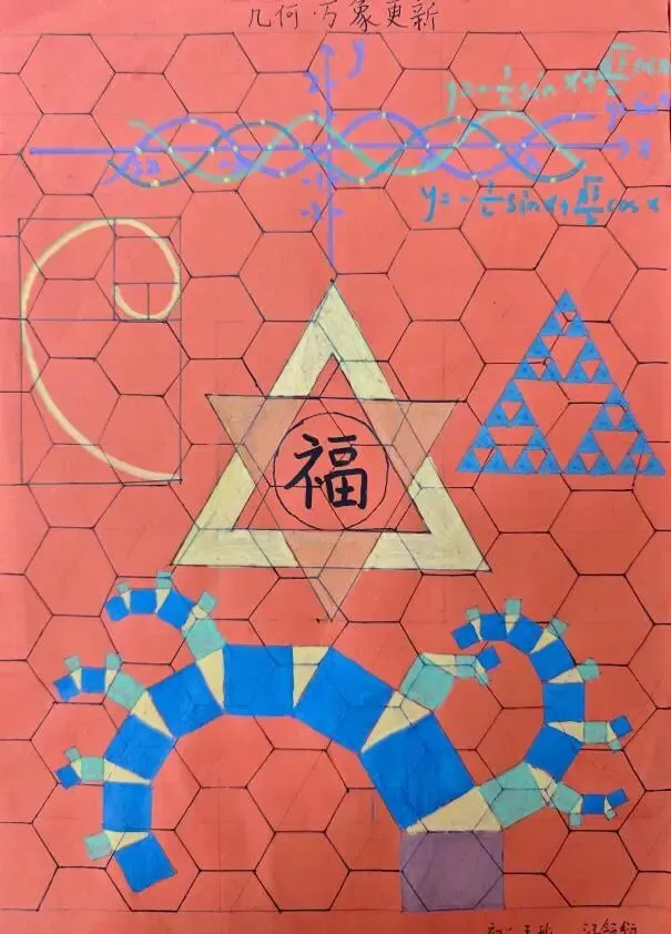 理性生辉,数形藏趣。当数学演算邂逅新春意趣,初二学子的寒假作业便多了别样的温度。大家认真完成综合试卷与二次根式课后习题,在演算推理中夯实八下数学基础;更有学子化身创意设计师,以几何图形勾勒数学年画,用数字对仗撰写数学春联,将理性思维融于指尖创作;在数学纪录片与科普书中探索数字奥秘,收获卡片里,满是对数学世界的新认知。