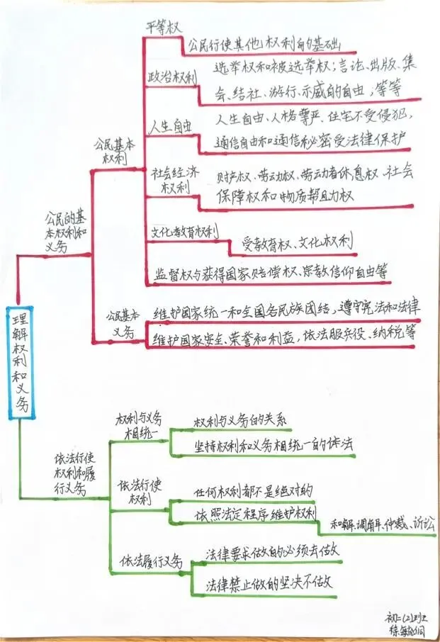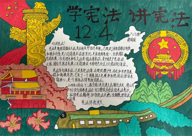 法治润心,思维筑魂。初二学子在思政寒假作业中,择一践行,或以“宪法伴我成长”为主题,用漫画、手抄报、参观日记绘就法治初心,让宪法知识入脑入心;或梳理八下道法课本单元知识,以手写思维导图搭建知识框架,让零散的知识点凝练成系统的知识网,在实践与思考中践行“知行合一”。
