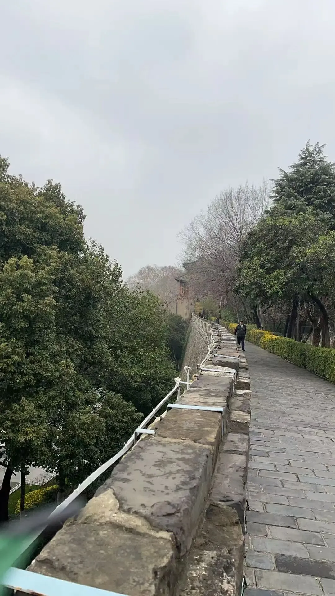 队友还去了挹江门南侧的南京城墙。和西安保存完整的四方城墙相比,这段城墙宽度大约只有西安的三分之一,气势上确实逊色一些。西安的城墙是完整的四边形,基本都保留了下来,看上去确实壮观。而南京的城墙则是断断续续地保留了一部分城门和墙体。