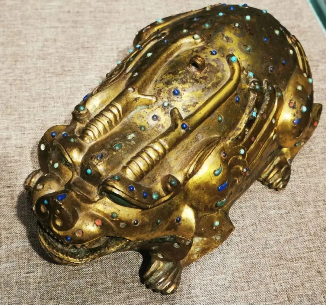 • 细节之美:神兽的鬃毛、羽翼、爪趾都以细腻纹路刻画,鎏金层虽历经千年仍光泽温润,宝石镶嵌牢固,无一脱落,足见汉代工匠的高超技艺。