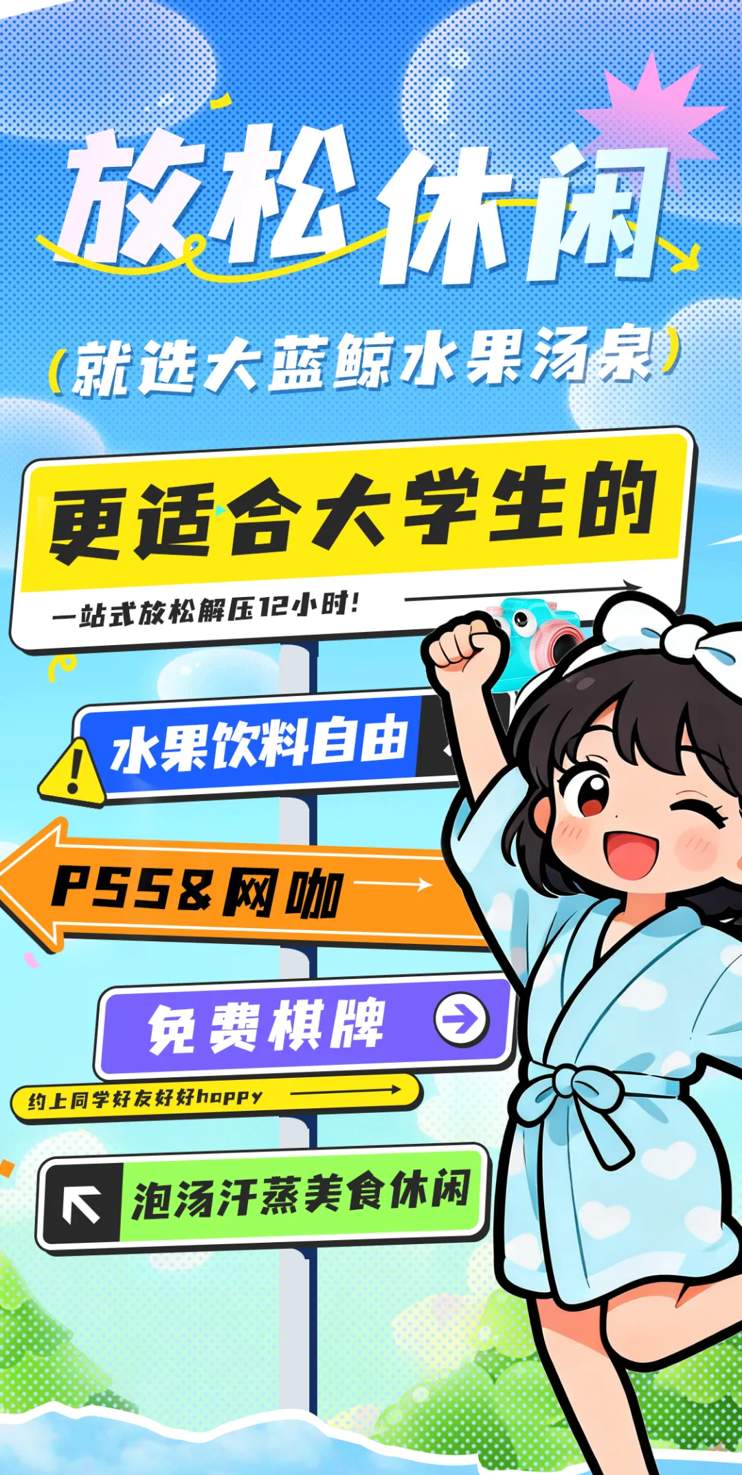 本周六日椰青上线!南京大学生必冲!49元抢12小时洗浴+水果饮料自助+早餐!简直是性价比天花板!大蓝鲸水果汤泉承包你的快乐!