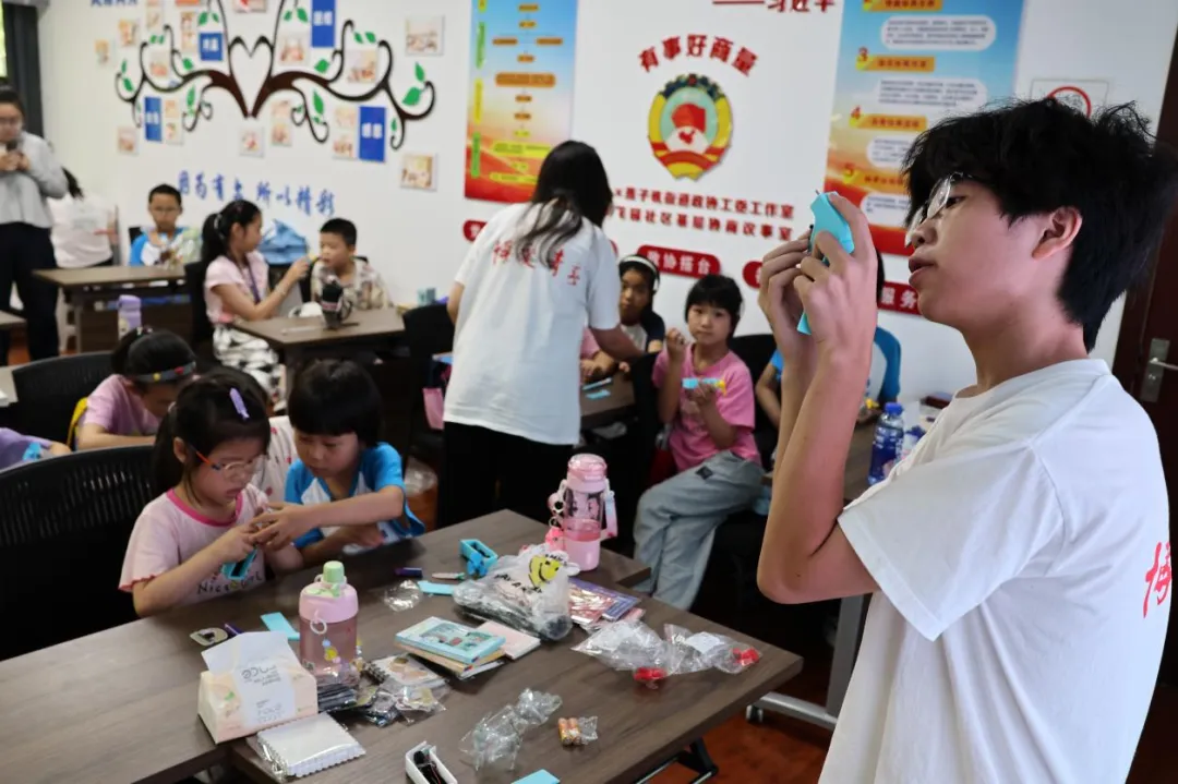 面向老人,项目推出“银龄关怀”系列服务。志愿者系统讲解防跌倒、防中暑知识,提供血压测量义诊;手把手教授智能手机使用、设置紧急联系人、下载反诈APP,并协助填写“急救信息卡”,为突发情况提供关键信息支持。香囊制作环节中,老人与志愿者共同缝制香囊,感受传统手艺魅力。活动尾声,孩子们书写的明信片被送至老人手中,稚嫩的祝福让老人们绽放笑容。
