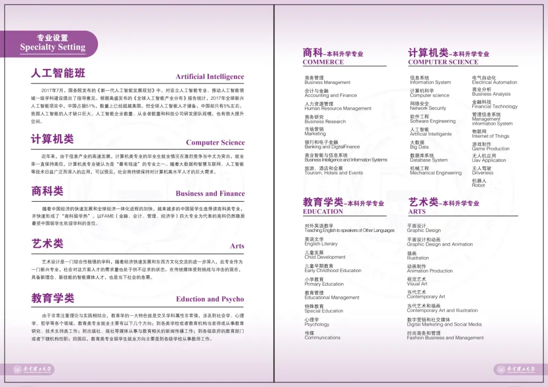 项目涵盖商科类(如金融、会计、商务管理)、计算机类(如人工智能、计算机科学与技术 )、艺术类(如视觉传达与设计 )、教育学类等热门专业,满足不同学生的兴趣和职业发展需求。