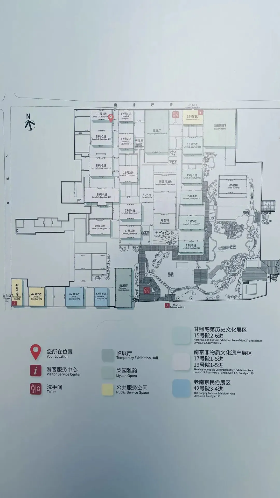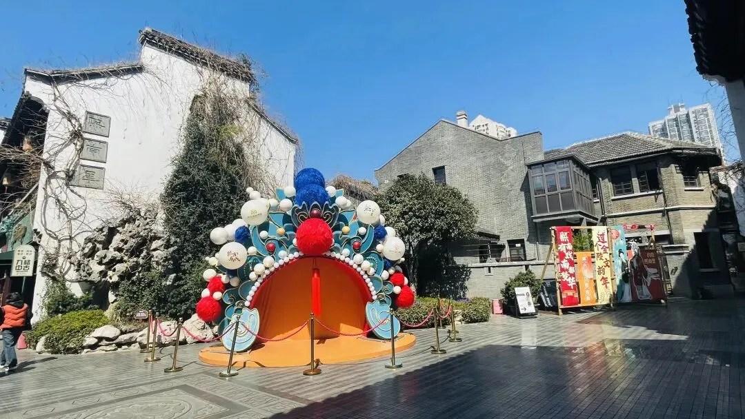 这是戏台,周末节假日会有昆剧和白局专场演出等。南京白局是南京本土独有的传统曲艺(2008年第二批国家级非遗,曲艺类Ⅴ-81),因早期白唱一局、不收酬劳得名,源于明代云锦机房的织工自娱说唱,有“南京方言活化石”“民间文化百科全书”之称。其发端于明末清初南京云锦工坊;清代中期成型,光绪年间盛行于南京及周边六合、江浦、皖东来安等地;民国后受战乱、行业衰落影响一度濒危;2000年后逐步抢救保护,建立传习基地、进校园推广。它纯南京方言演唱,诙谐接地气,保留大量古老方言语汇;传统为围坐“开席坐唱”,一人主唱、多人伴奏;现发展出彩唱、表演唱;常用胡琴、月琴、三弦、笙箫、碟盘、鼓板等;曲牌丰富,有《数板》《满江红》《梳妆台》《剪剪花》《机房苦》《金陵遍地景》《打议员》《城门颂》等,内容多反映市井生活、时事新闻、金陵风光。