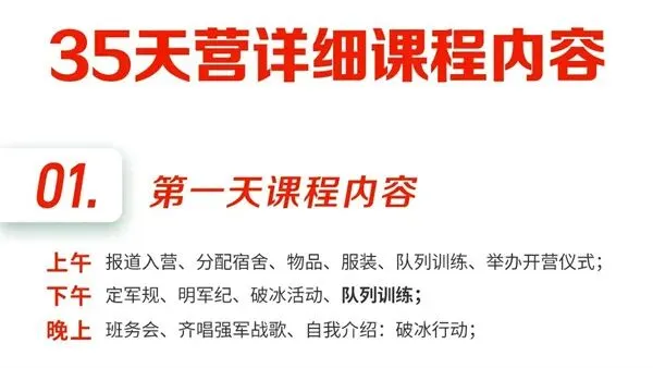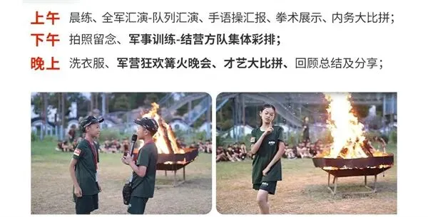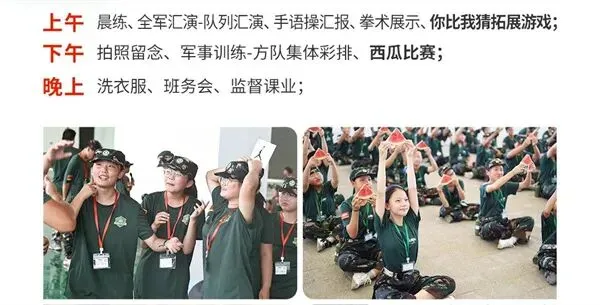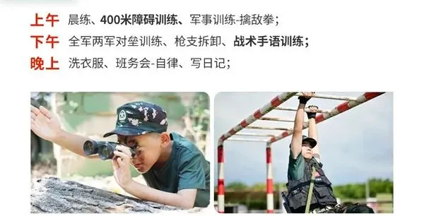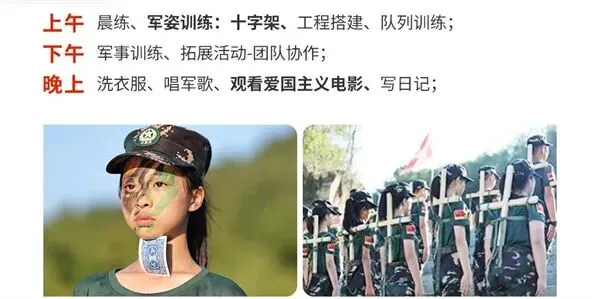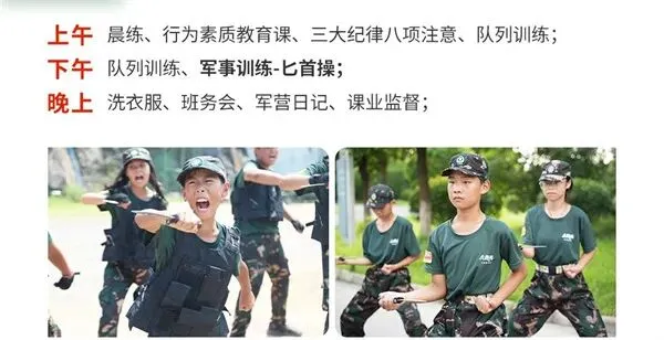 师资:男军事教官+女教导员+生活老师+心理老师(分班上下浮动一岁);