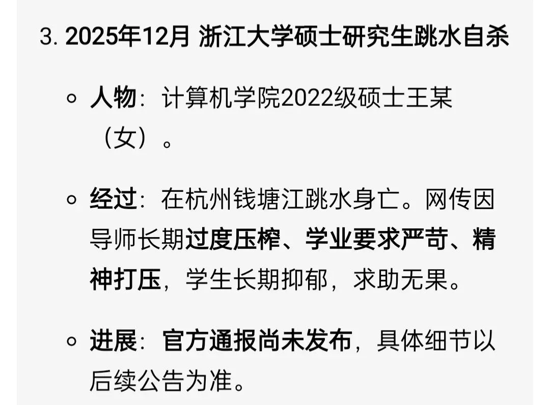 2026年3月14日 ,中南大学湘雅医院2023级神经病学硕士生、规培生孙同学,女,25岁,坠江身亡。