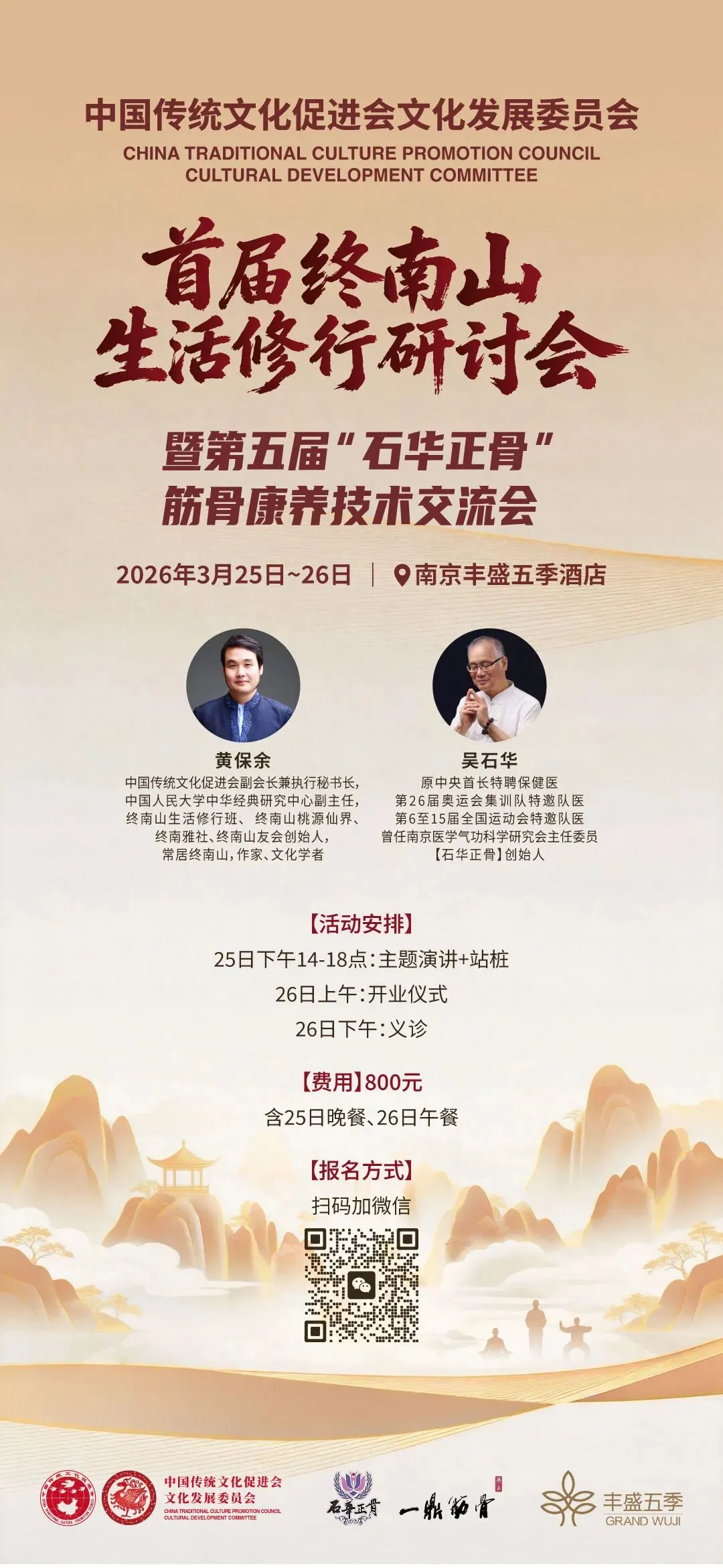 1.城市修行之主题演讲黄保余2.武当康养之道养五行马元刚3.筋骨养护技术之临床感悟苏强、范子广、张贺彬