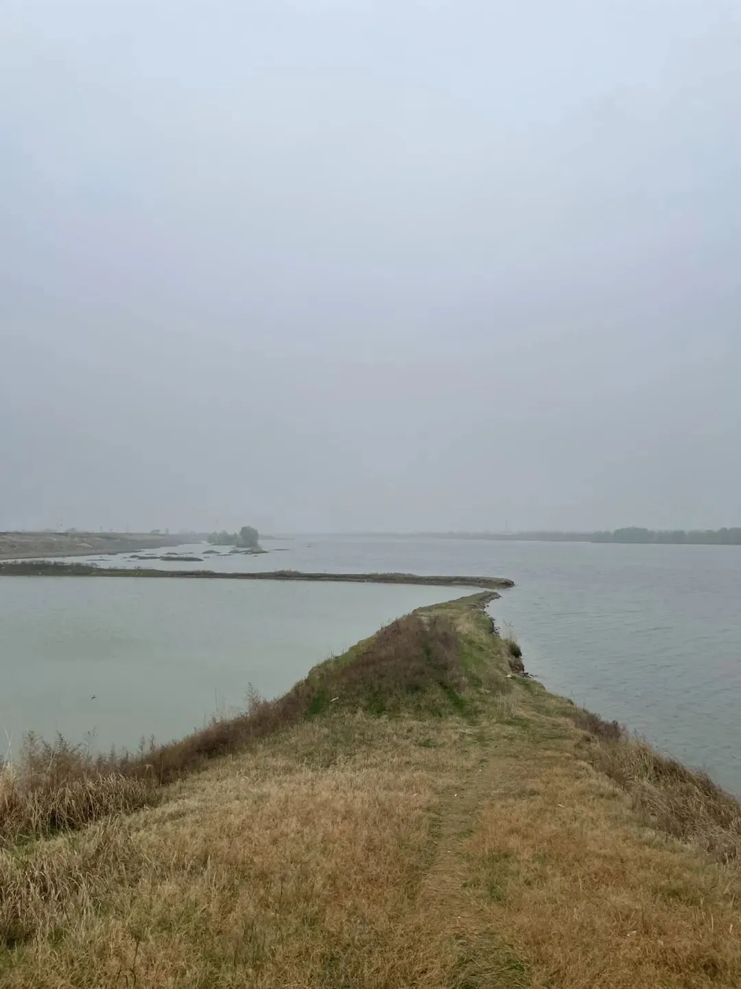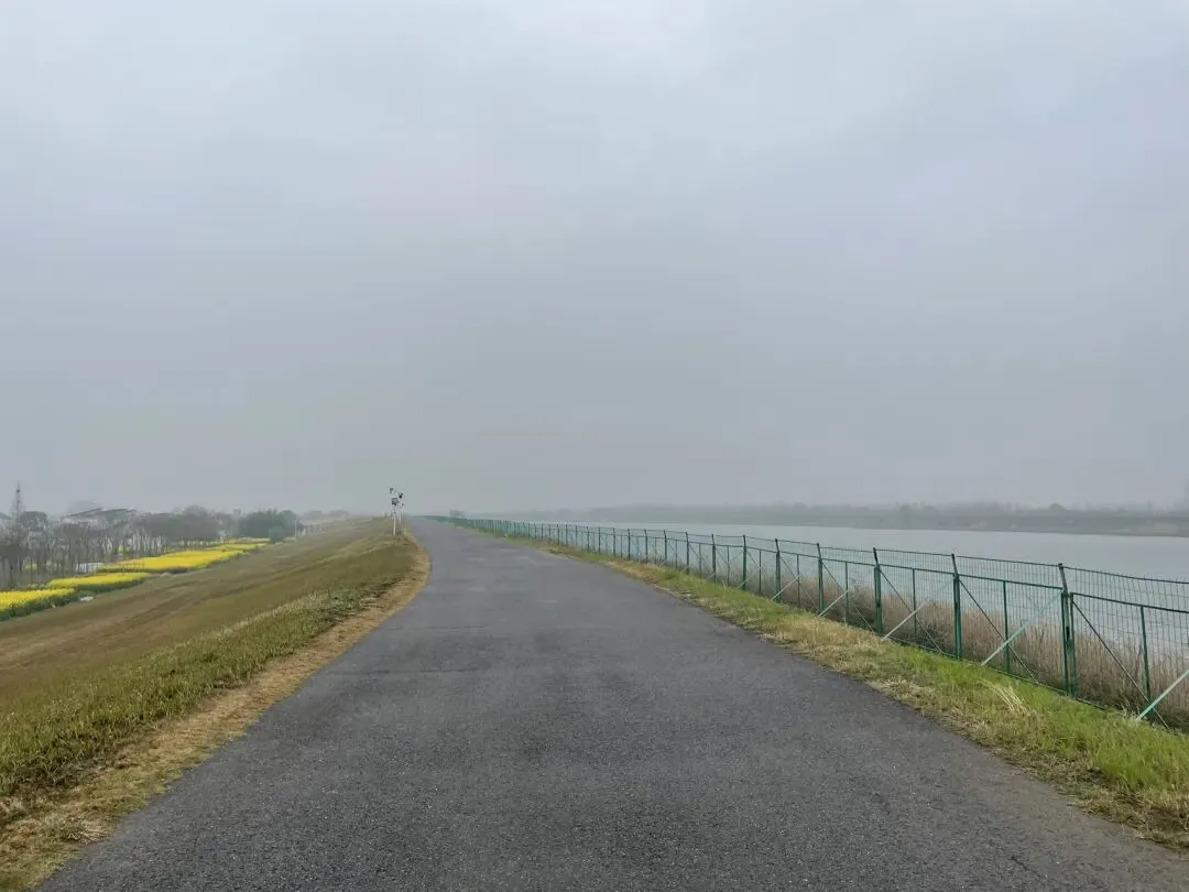 南京出发,百度导航:澛港大桥与峨山东路交叉口 芜湖市弋江区,约102公里75分钟89%高速。看到大桥了不要上桥,沿大桥右侧道路上河堤,约100米上了河堤后左转,沿着河堤逆流而上,开启这段历史与自然碰撞的春日之旅。文天祥曾督师澛港,利用漳河屏障进行抗元斗争。当他正准备与元军大战时,传来恭帝降元的消息,悲愤中写下《澛港》:“鞭投能几日,瓦解不崇朝。千古燕山恨,西风卷怒潮。” 河堤顶部道路限宽,普通SUV通行没问题,陆地巡洋舰之类的估计过不去。上了河堤,城市渐远,前方是笔直的河堤和弥漫的雾气,似乎预示着一场静谧探索的开启。