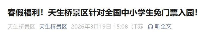 本次景区免费对象及春假对象为义务教育阶段学生,幼儿园不放假;