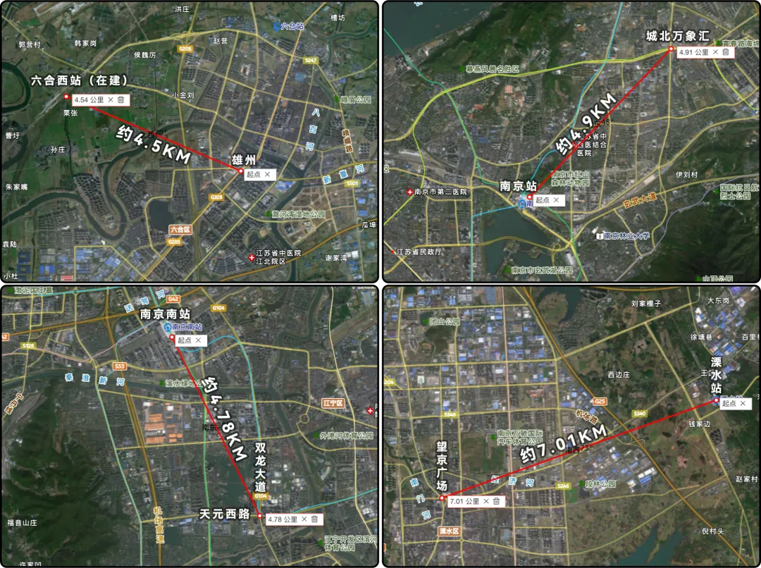 比南京站到燕子矶的万象天地更近,比南京南站到百家湖商圈中心更近,比溧水站到望京广场也更近。