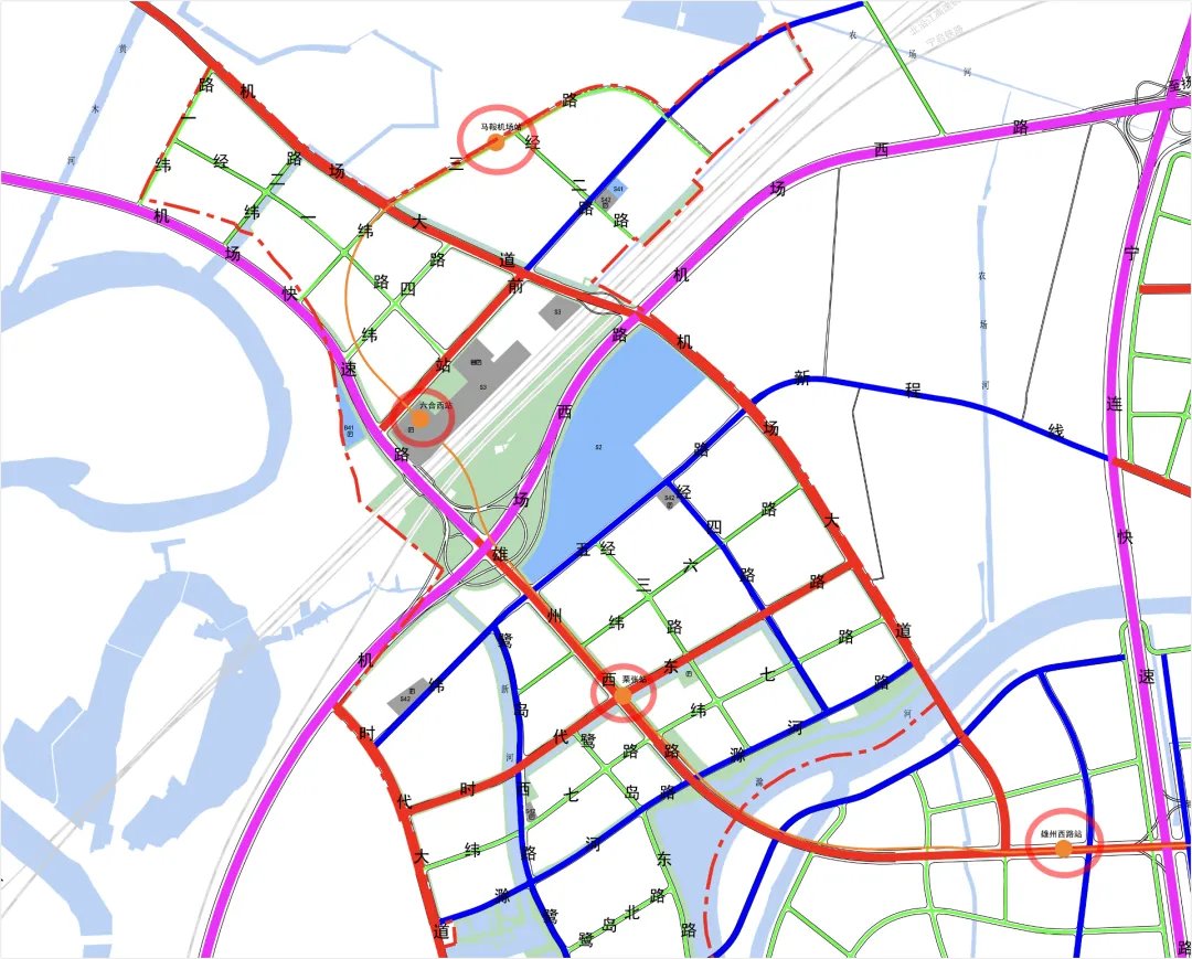 根据规划,机场西路与雄州西路交叉处将设置了一处大型互通,跨越互通和铁路的方向上,还特意在主路两侧单独设置了非机动车道,相当贴心。