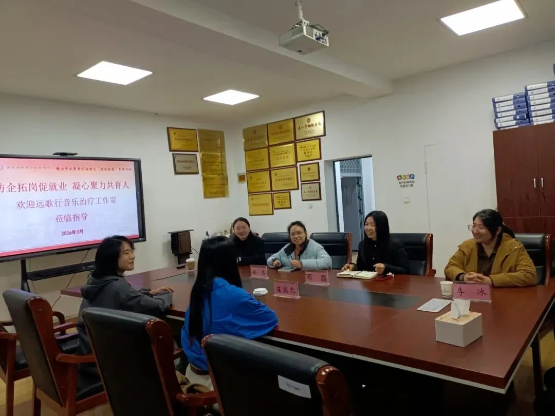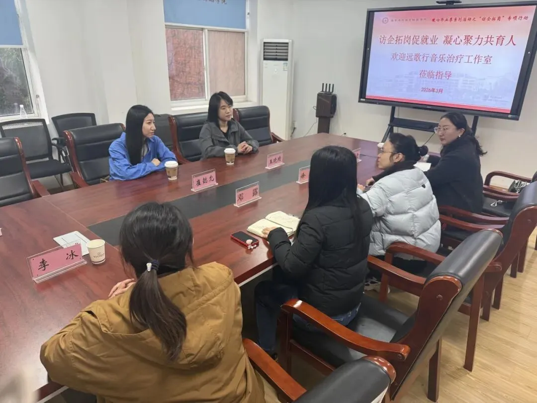 讲座结束后,远歌行音乐治疗工作室团队的崔懿允和王晓晴与南京特殊教育师范学院音乐与舞蹈学院领导、学科负责人召开「访企拓岗」专项座谈会,围绕人才培养、实习就业、学术合作等方向深入探讨,为同学们争取更多实践与成长机会。