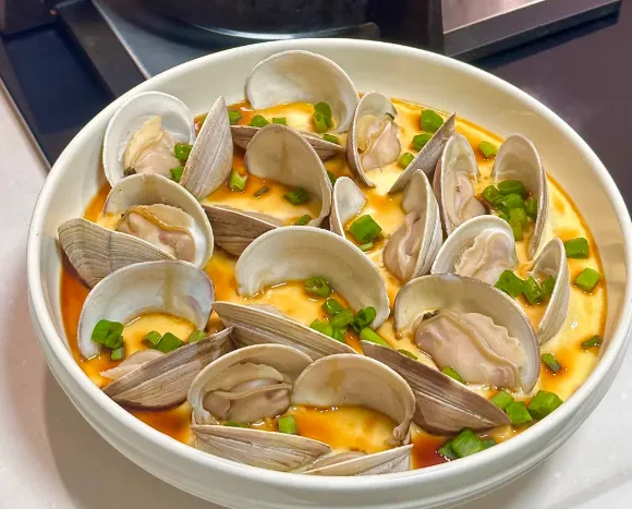 说一道好做的文蛤炖蛋。文蛤吐沙后焯到开口,鸡蛋打散加温水与少许盐,撇掉泡沫,上锅小火蒸到半凝固,再把文蛤和蛤蜊汁铺上去,续蒸两三分钟,出锅撒点葱花就行。鲜是从底下慢慢冒出来的。