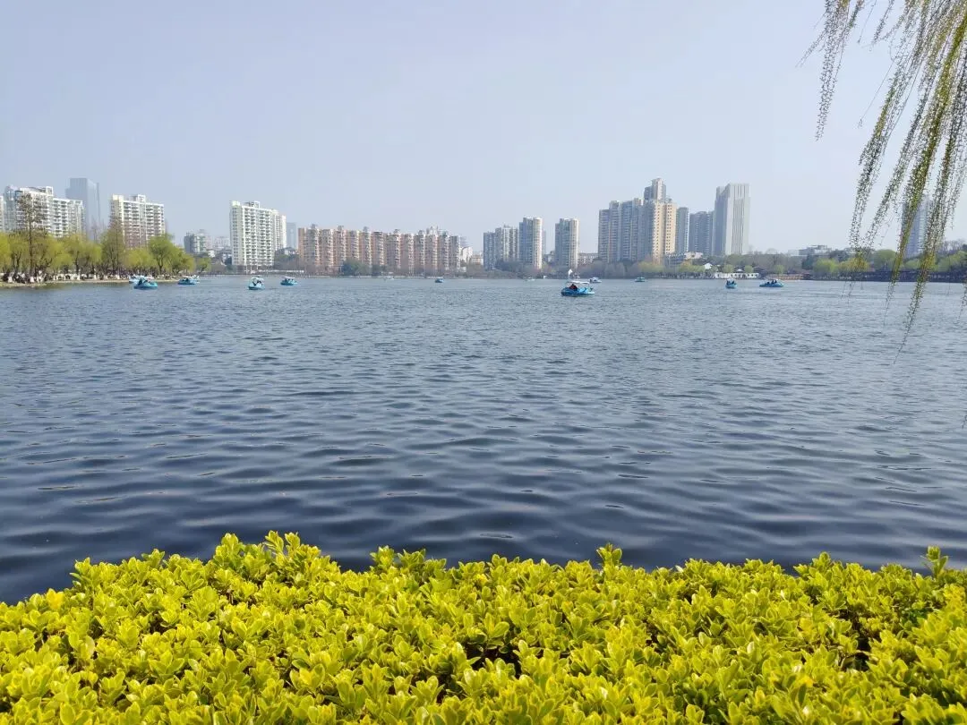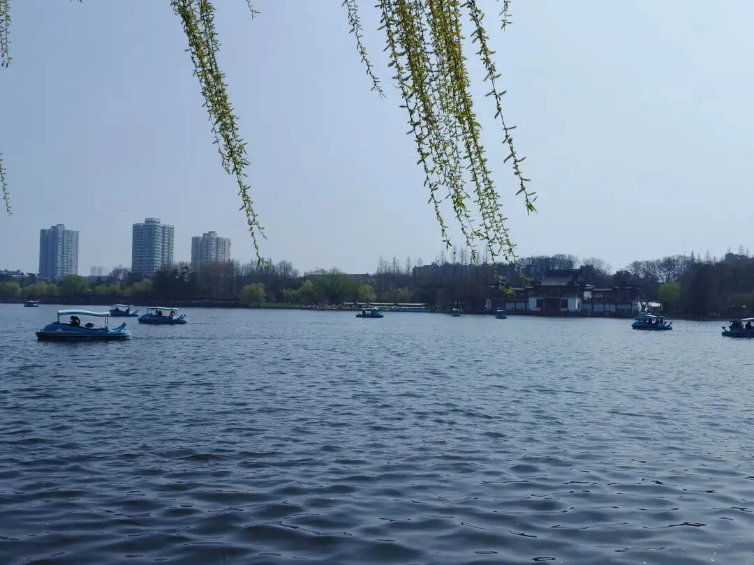 一进公园,瞬间被春日的热闹裹住了。湖水碧波荡漾,岸边的柳枝抽了新芽,风一吹就轻轻扫过湖面,溅起一圈圈细碎的涟漪,连空气里都飘着青草和湖水的清新。湖面上散落着几艘游船,慢悠悠地晃着,船上的人说说笑笑,午后的闲适感直接拉满。