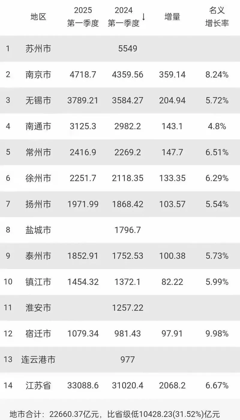 2025年镇江GDP总量5736.78亿元,在江苏13个地级市里排第十,倒数梯队。可人均GDP呢?全省第五。南京GDP是镇江的3.39倍,但南京人口是镇江的将近三倍。换句话说,镇江用不到南京三分之一的人口体量,撑起了一个相当体面的人均产出。