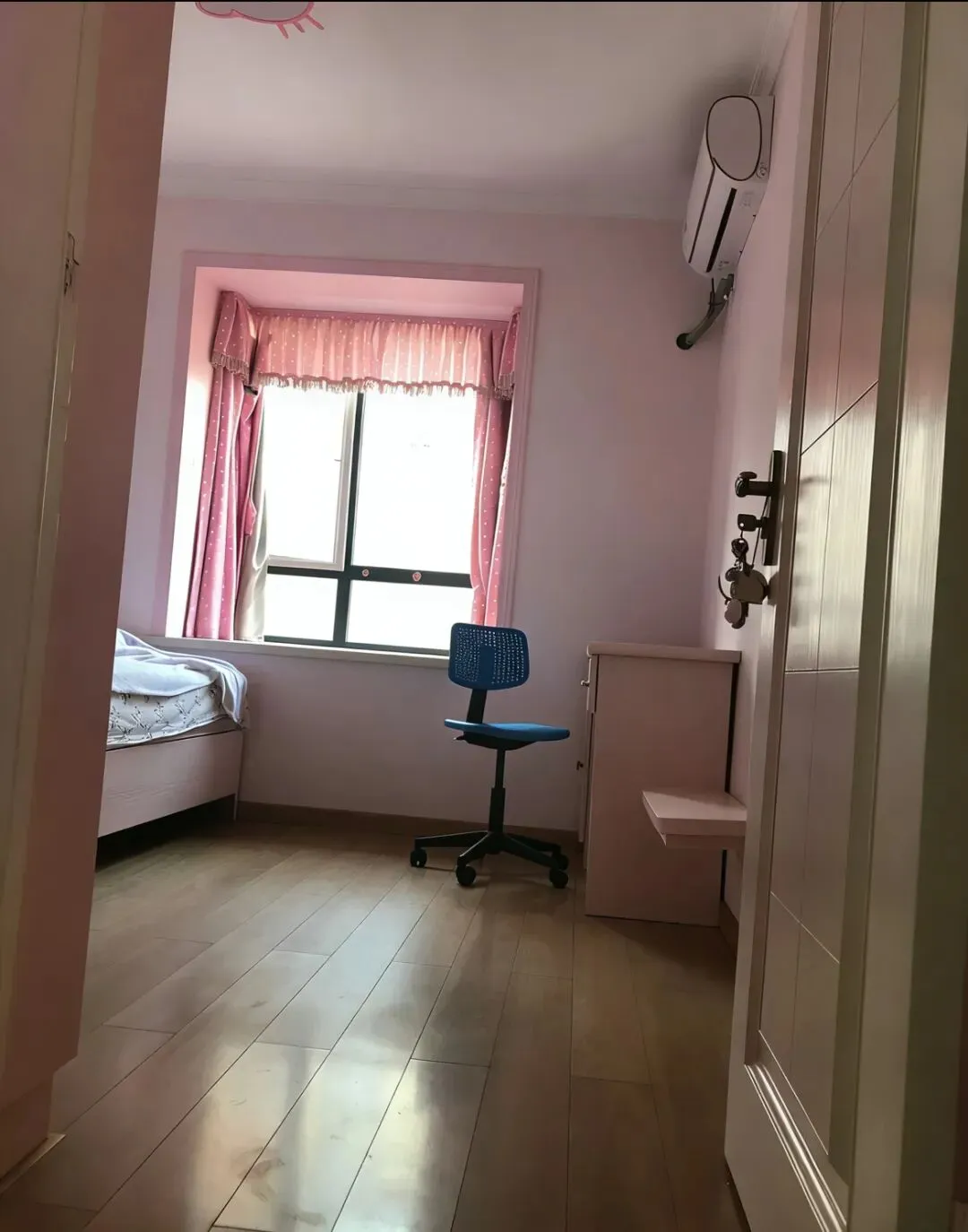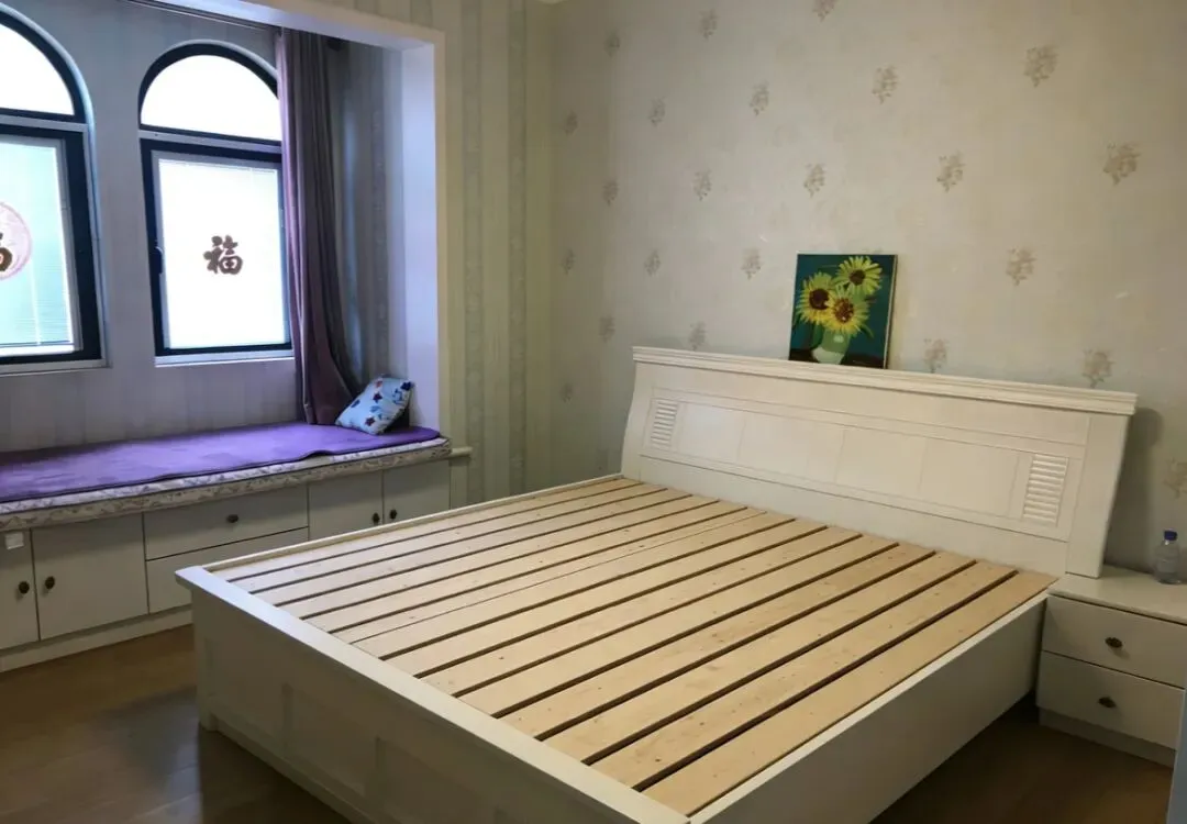 3个房间都有柜子,储物方便。主卧配有1.8*2.0的实木床,有飘窗。两个次卧是1.2*2.0的实木床。次卧都有实木桌,办公学习很方便,网络已通。有一个次卧也有飘窗。卫生间干湿分离。