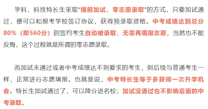 其实,特长生就是中考前的一次合法“掐尖”,只是入学的一个途径,是各高中提前锁定优质生源的重要手段,高中入学后,还是和其他统招生一样,正常上课、选科、参加高考。