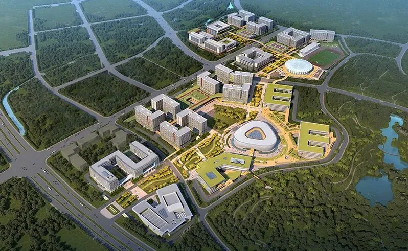 新校区规划总建筑面积约62万m²,分两期建设:一期工程可容纳10000名学生规模,主要建设内容包括教室、学生宿舍、食堂等。