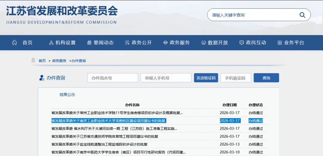无独有偶,几天前,官方发布《关于南京工业职业技术大学龙袍校区建设项目建议书的批复》。
