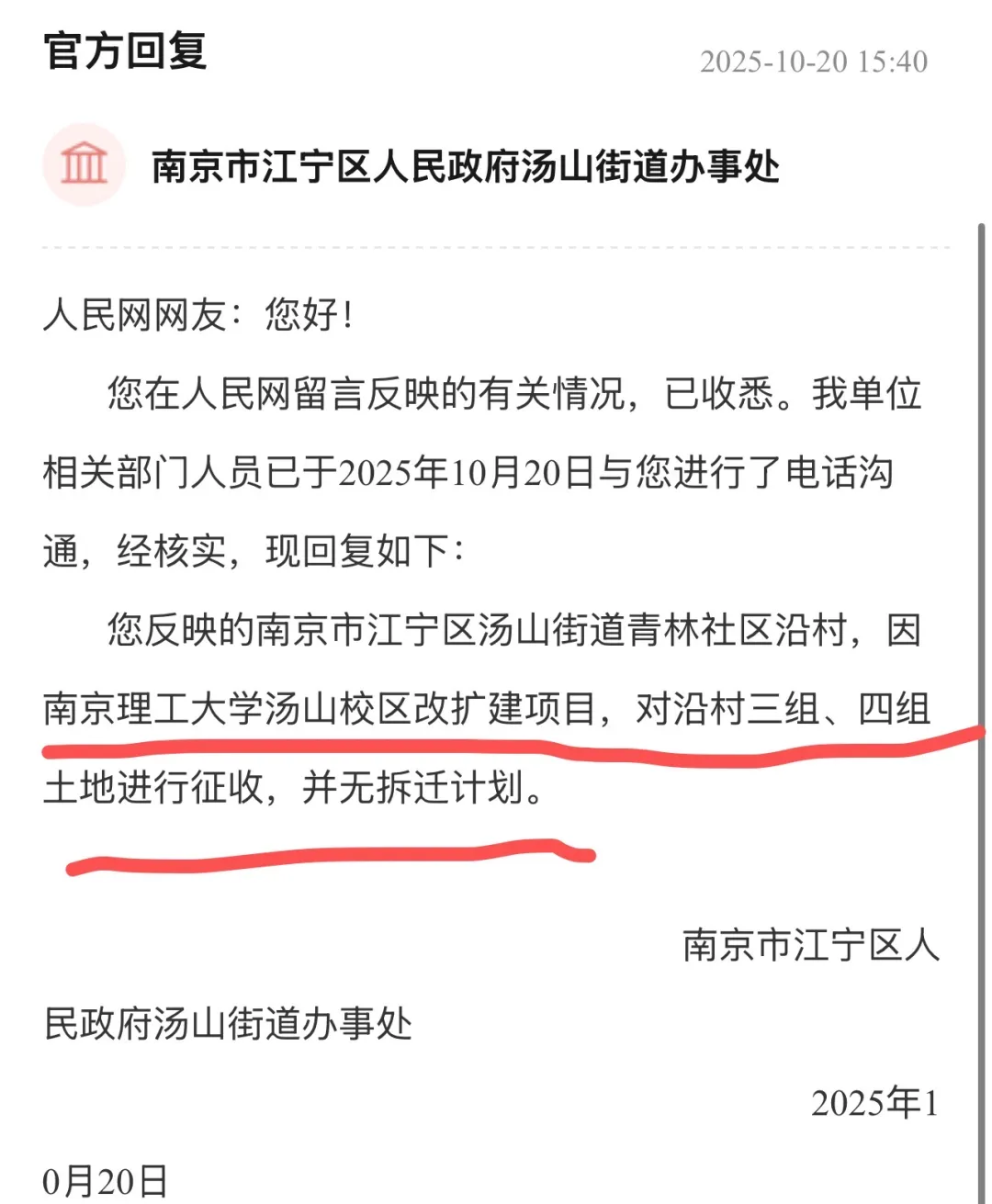 去年10月20日,南京理工大学汤山校区改扩建项目,迎来重要进展!官方正式回复即将对该片区土地进行征收,距离开工建设又进一步。