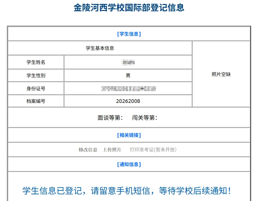 报名完成后,家长如果想确认报名是否成功或修改/补填信息,可登录:http://zb.jzhx.net/jzhx2020/szinput_gj2020.asp点击红色“登录查询”字样,报名时填报的学生姓名和身份证号即可查看、修改信息。