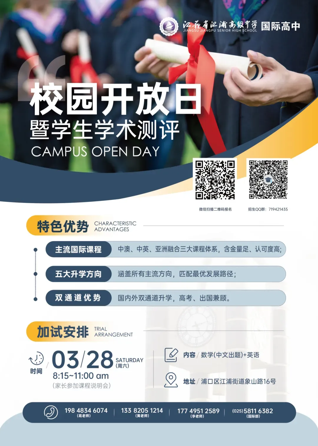 1. 加入“2026江浦高级中学国际高中招生QQ群”,群号:719421435。