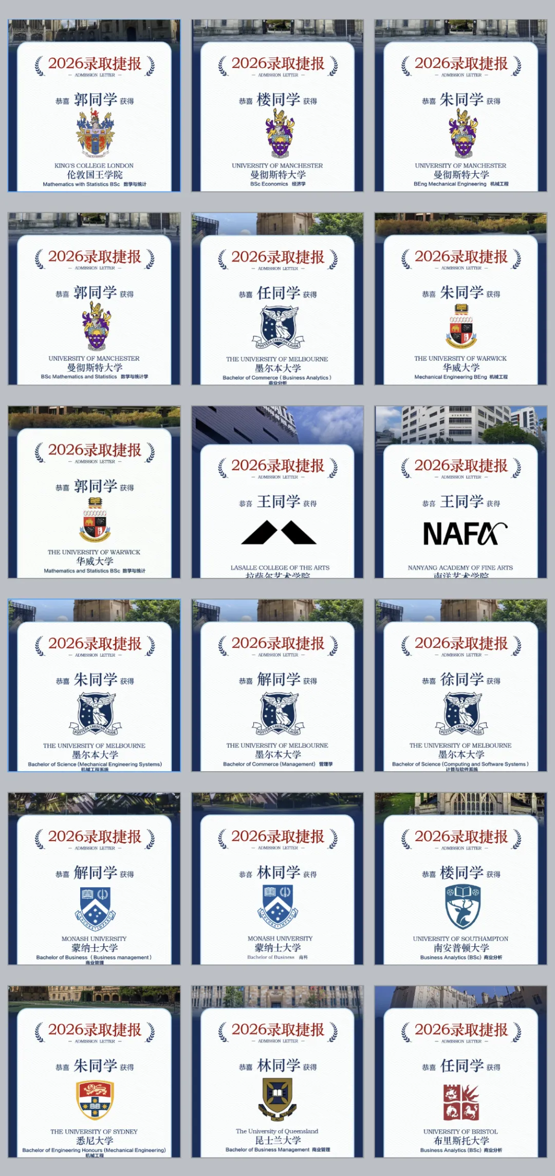 截至2026年3月初,学校国际高中2026届毕业生已陆续斩获42封世界顶尖名校录取通知书,录取院校包括:伦敦国王学院、曼彻斯特大学、布里斯托大学、华威大学、墨尔本大学、悉尼大学、澳洲国立大学、谢尔丹学院等,覆盖英国、澳洲、马来西亚、加拿大等多国,均为QS世界前100顶尖名校!人均手握3封名校录取通知书,升学成果亮眼!在信息爆炸的当下,国际教育成为越来越多家庭的选择,而一所靠谱的国际高中,更是学子们逐梦世界的坚实基石。此次两大名校招生工作的开启,无论是办学保障的加持,还是多元课程的布局,都为初三家庭提供了高性价比、高保障的择校选择。有意向的初三学子和家长,可及时关注学校官方信息,咨询招生详情、预约咨询或报名,避免错过关键节点。