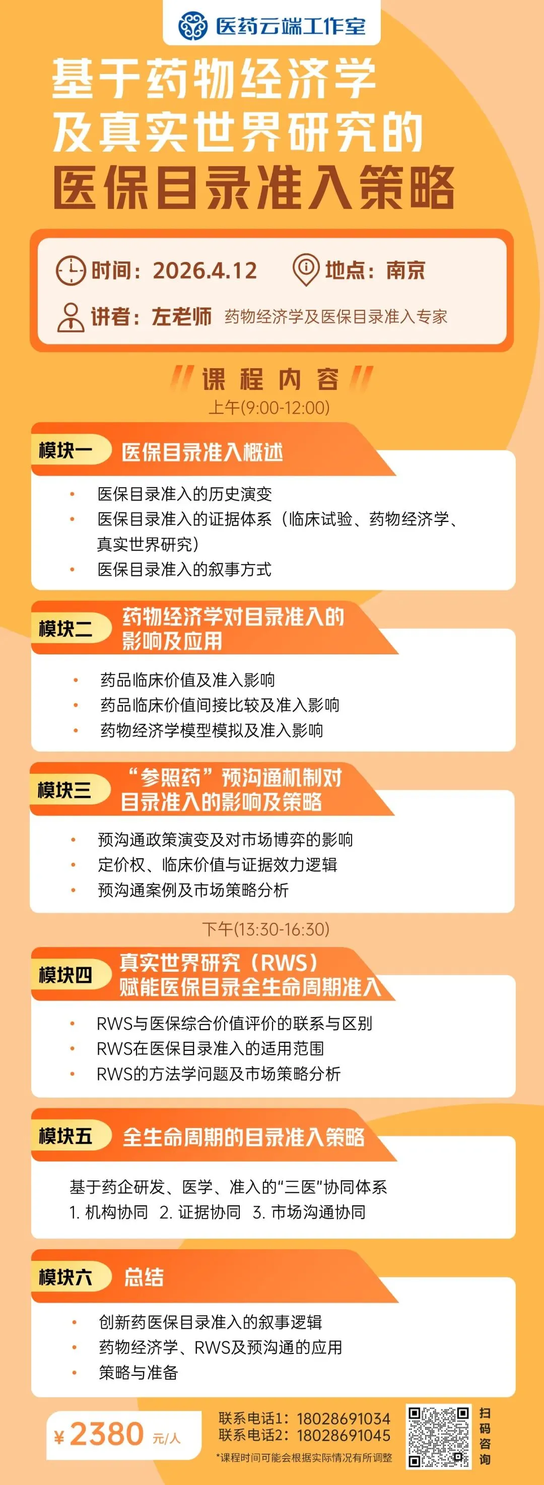 1. 紧扣2026新政,专业度拉满:左老师深耕药物经济学及医保目录准入领域多年,精准解读医保药品引入RWS评价与“参照药”预沟通新政,直击行业痛点,传授一手实操方法与策略。