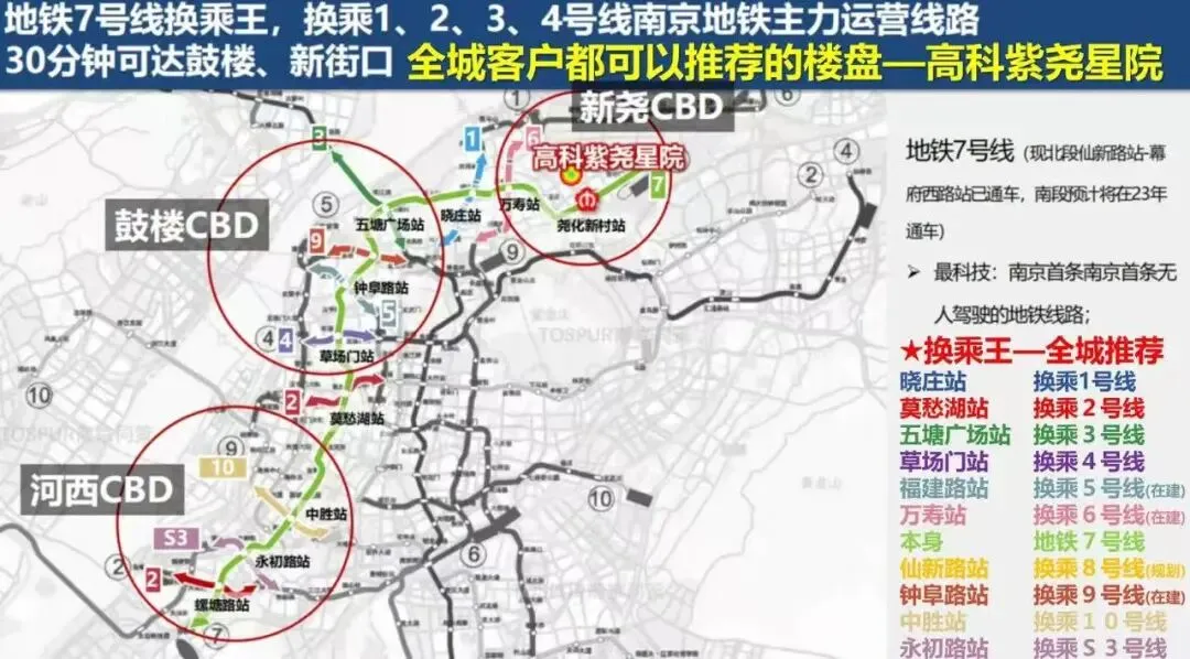 项目距离地铁7号线尧化新村站约450米(数据来源:百度地图测距),7号线已全线通车,可换乘1、2、3、4、10等多条线路。周边绕城高速、玄武大道等城市主干道环伺,通达全城。