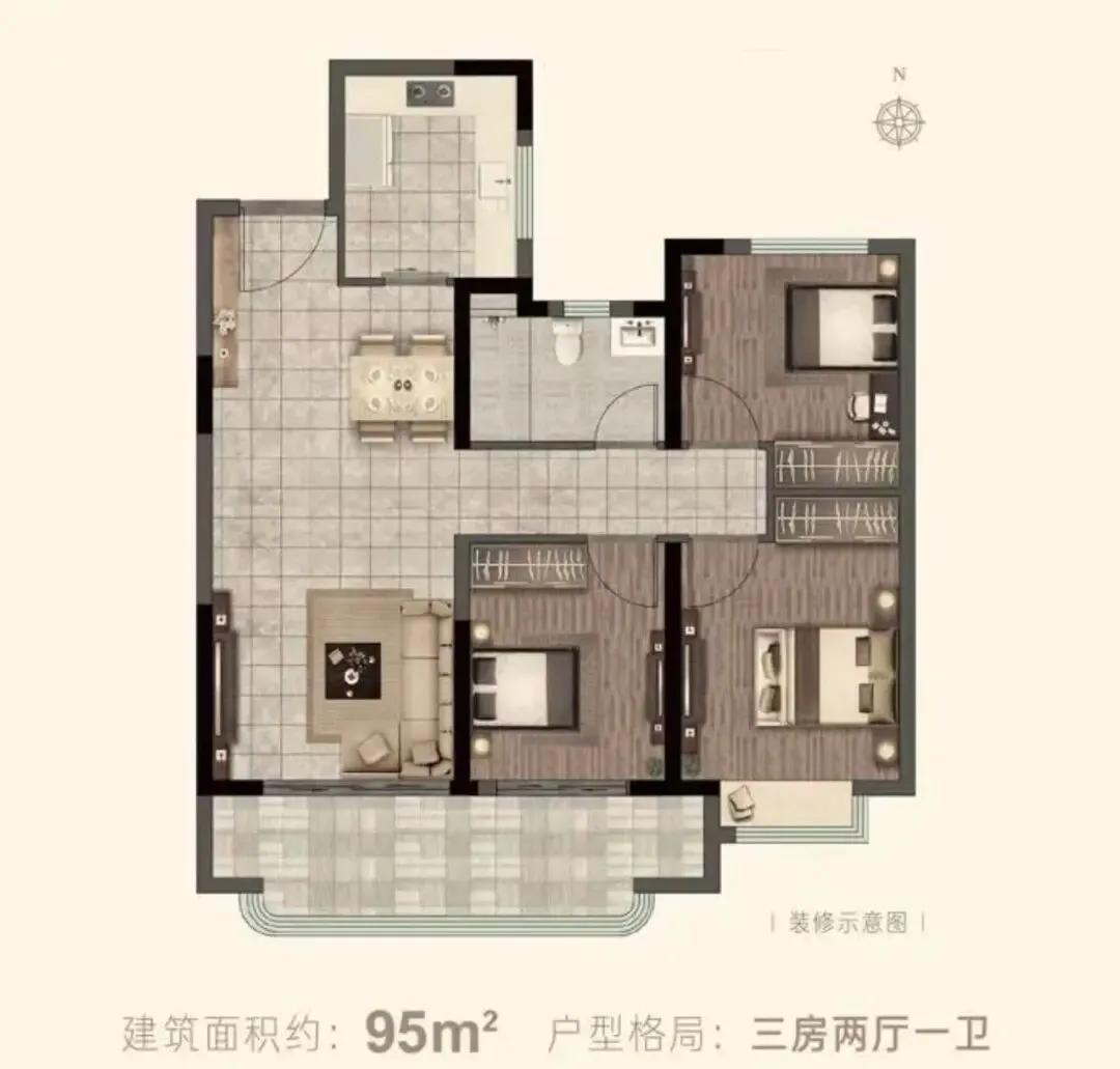 🏠 建筑面积约95㎡ 三房两厅一卫