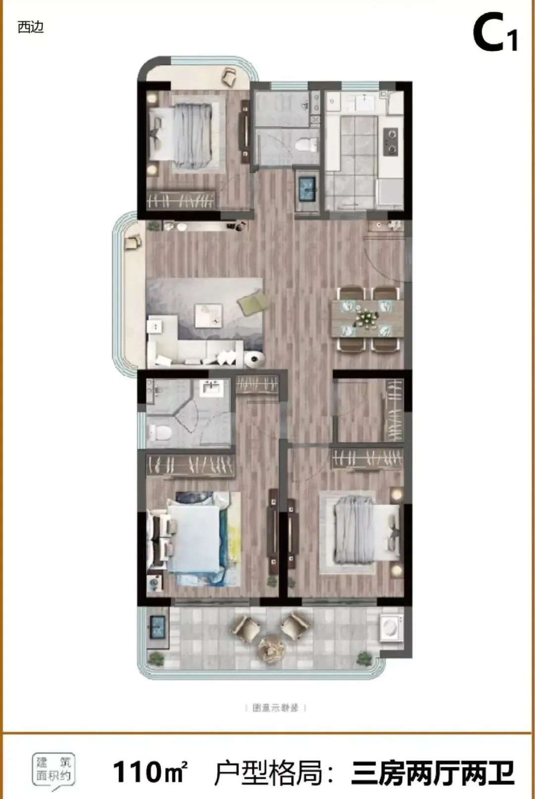 🏠 建筑面积约108㎡ 三房两厅两卫