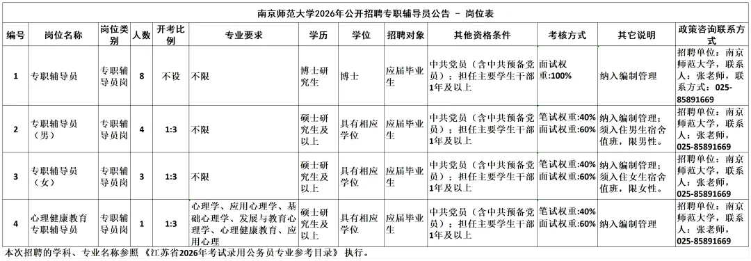 南京师范大学招聘专职辅导员16人