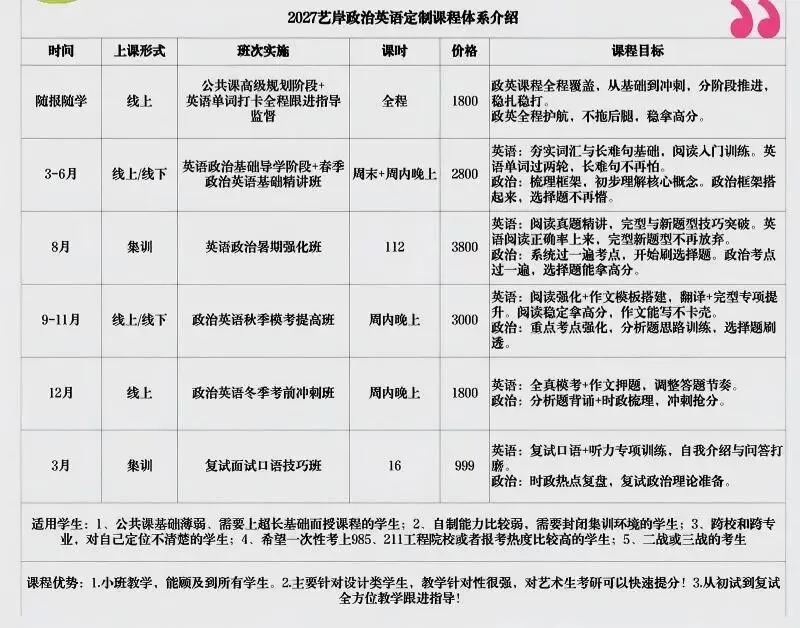 艺岸设计教育为设计类大学生提供一站式考研手绘理论、设计软件、国际竞赛、定制保研、出国留学作品集等专业技能辅导,涵盖了环境艺术设计、景观设计、工业设计、风景园林、视觉传达、数字媒体艺术设计、服装设计、美术学等艺术与设计类专业,师资主要由高校老师、知名高校博士研究生,硕士研究生、6年以上设计考研/竞赛培训经验专职讲师等组成。