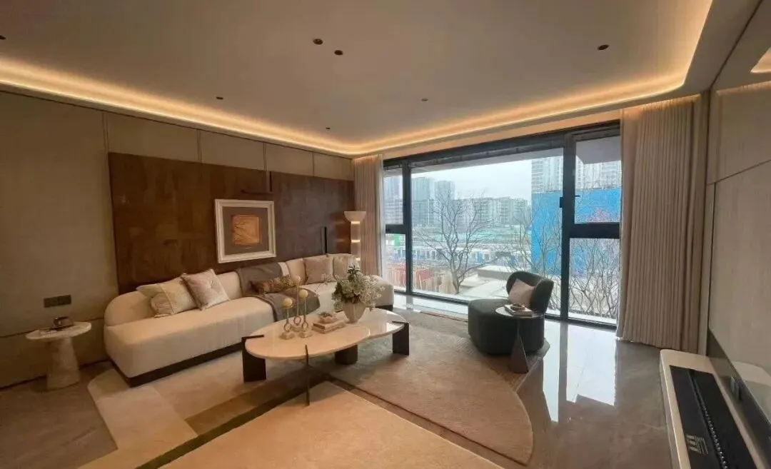 不同于市面上同面积段产品的局促感,这套样板间给我的第一感受就是开阔通透,这不仅得益于纯洋房的低密优势,更源于空间的科学规划与超高使用率。