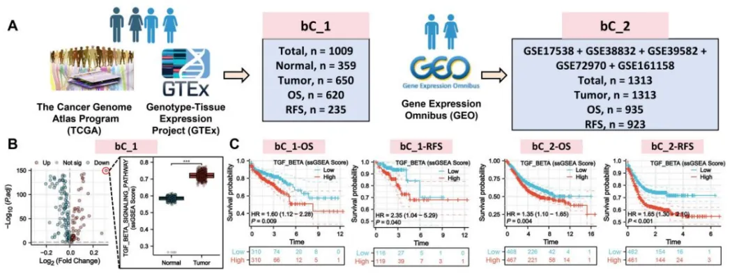 通过机器学习构建了一个包含12个基因的TGF-β相关风险评分模型(TGFRS),在训练集和验证集中均表现出优异的预后预测能力。TGFRS能独立预测免疫治疗反应,具有良好的临床转化潜力。