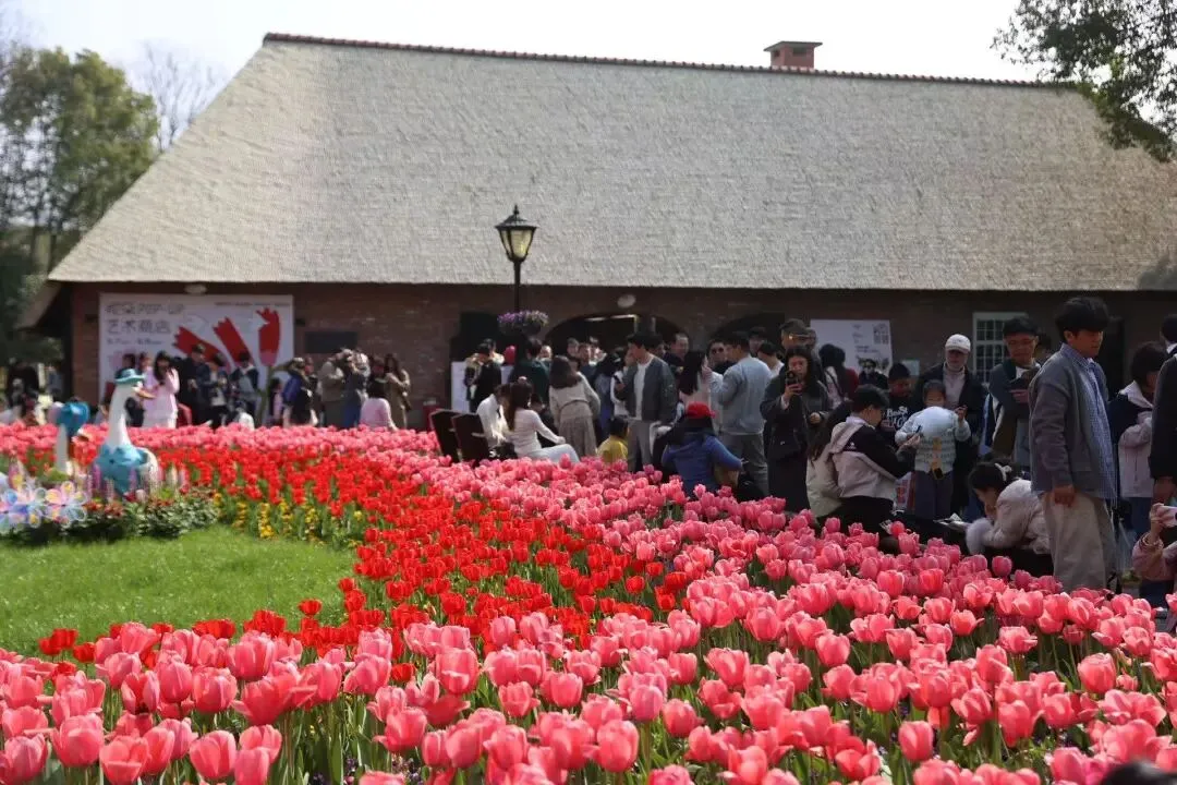 春风拂过滨江岸,南京绿博园早已被18万株郁金香织成梦幻花海。“郁金织彩,琉光捕梦”2026郁金香花会正酣,22个品种的郁金香与风信子错落交织,红的热烈、粉的温柔,七大艺术装置藏于花间,马车游园、双会场市集让人流连忘返。