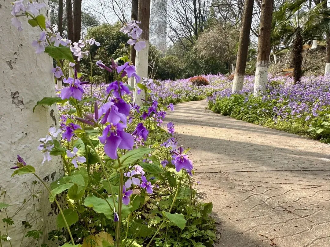 在我从北门徒步到东门的路上,二月兰开得肆意妄为,正式进入盛花期,整条步道被紫色浪潮温柔淹没!