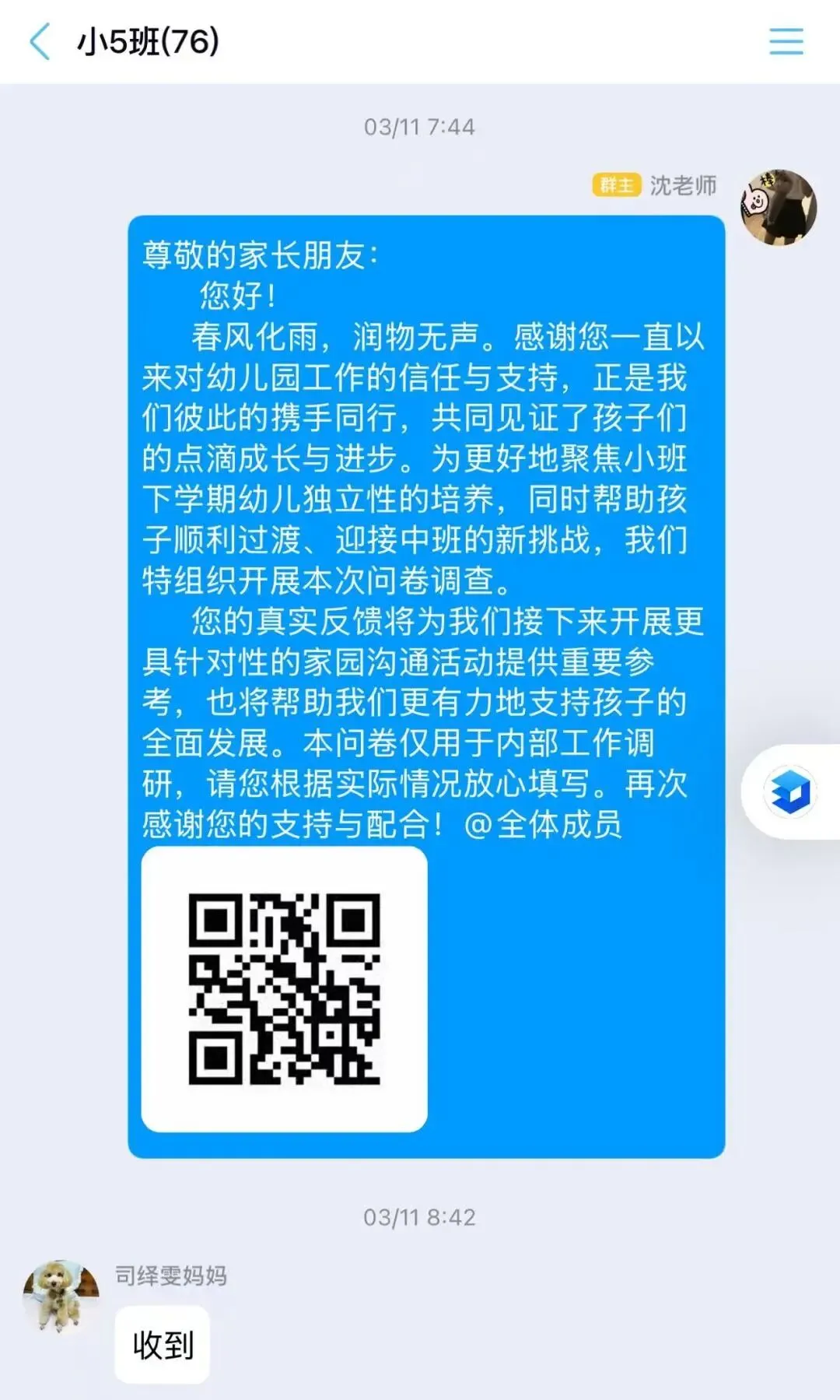 本次小班“家园沟通”圆桌派在真诚、融洽的氛围中圆满结束。相信在家园协同共进的努力下,在家长和老师的关心、呵护下,孩子们一定能顺利“解锁”新学期的幼儿园生活,开启快乐的成长旅程!