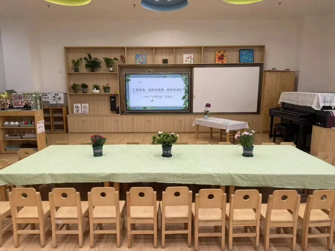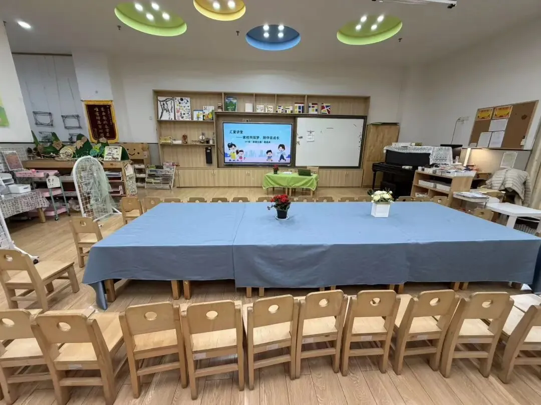 打破传统的“排排坐”,小班老师们布置了温馨的“圆桌派”环境。希望在这轻松的氛围中,家长们能卸下一天的疲惫,像朋友一样围坐在一起,敞开心扉,畅所欲言,真正实现心与心的零距离交流。
