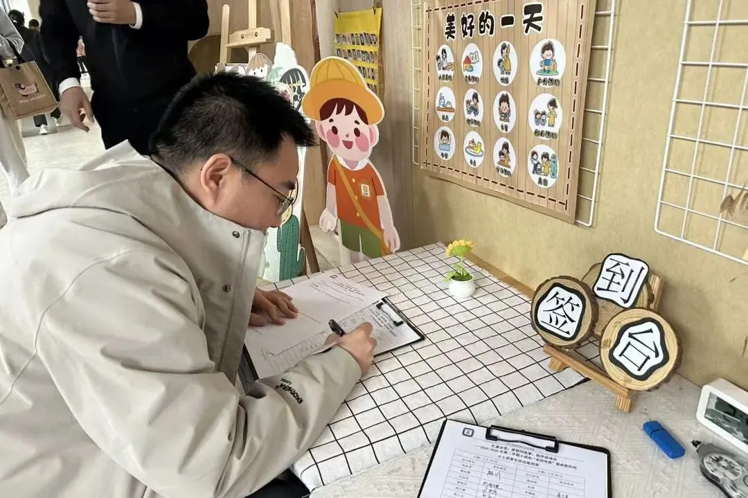 最美的遇见从“心”开始,家长们怀揣着对孩子们成长的美好期许,面带温暖笑意,如约而至。在温馨的签到台前,大家有序签到,一笔一画间,不仅是赴约的印记,更是家园共育承诺的悄然启程。