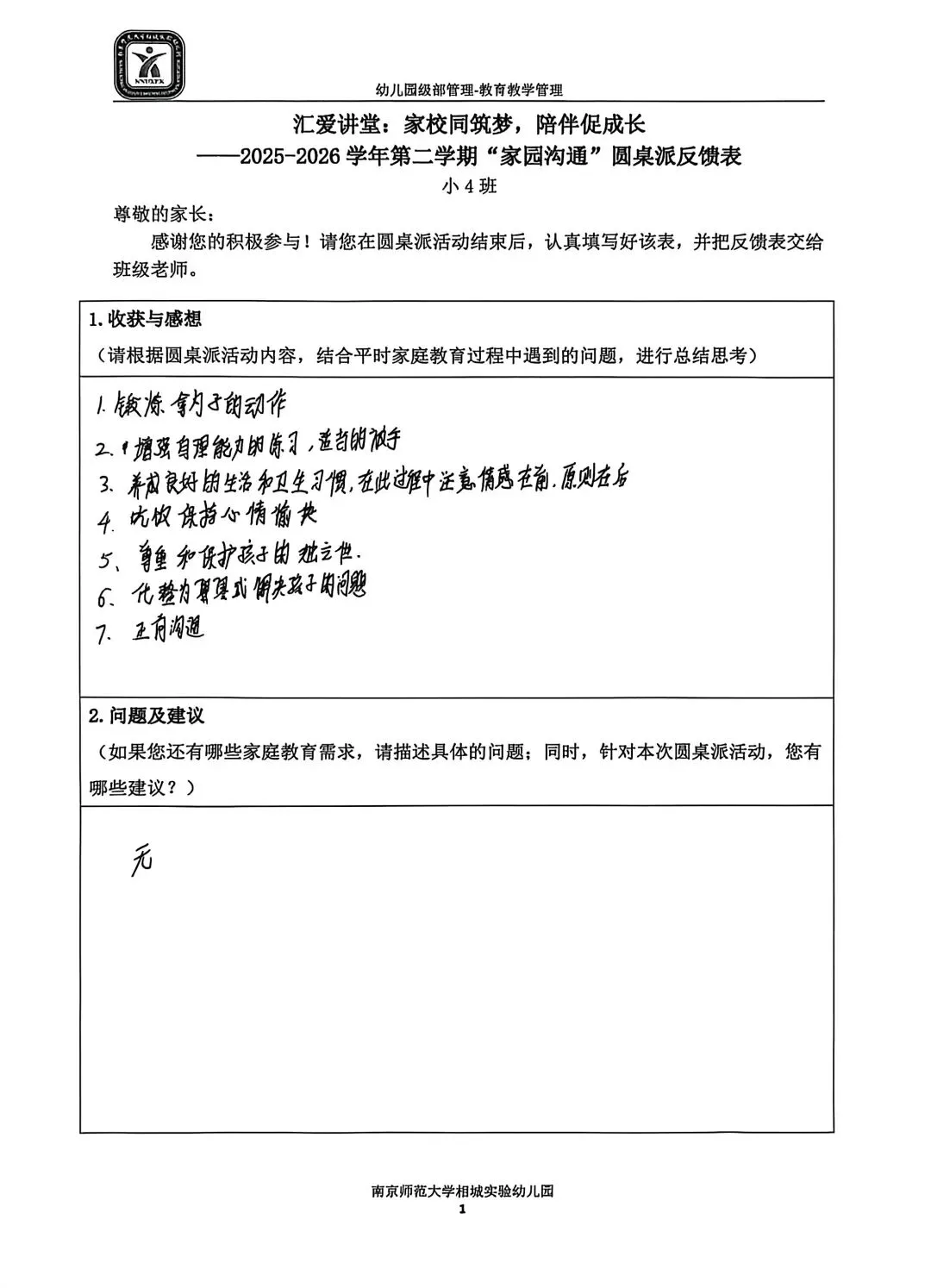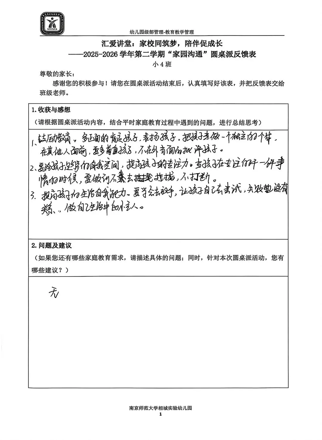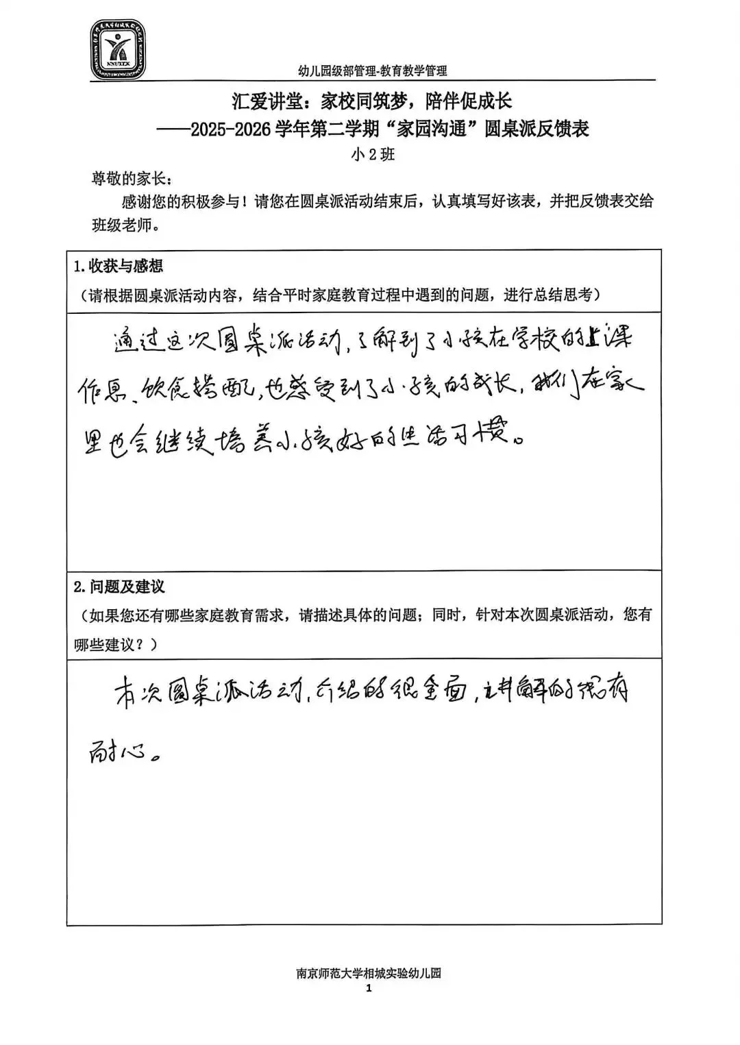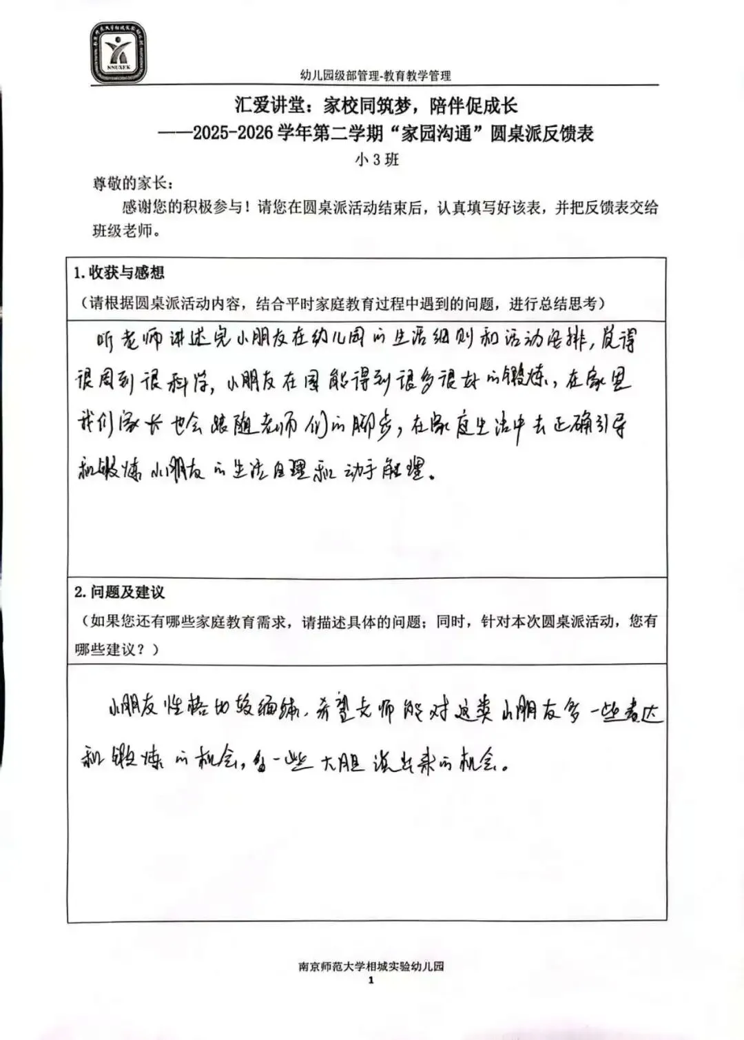 一张小小的反馈表,承载着大大的信任。家长们认真填写,写下的不仅是意见建议,更是对幼儿园工作的支持与认可。