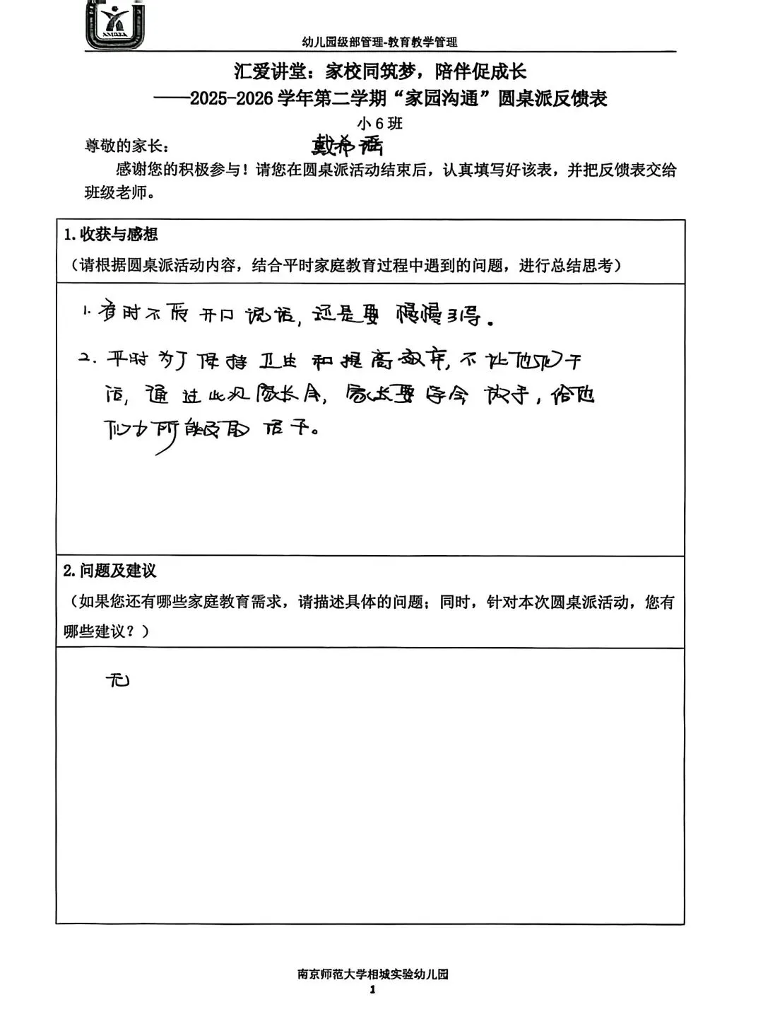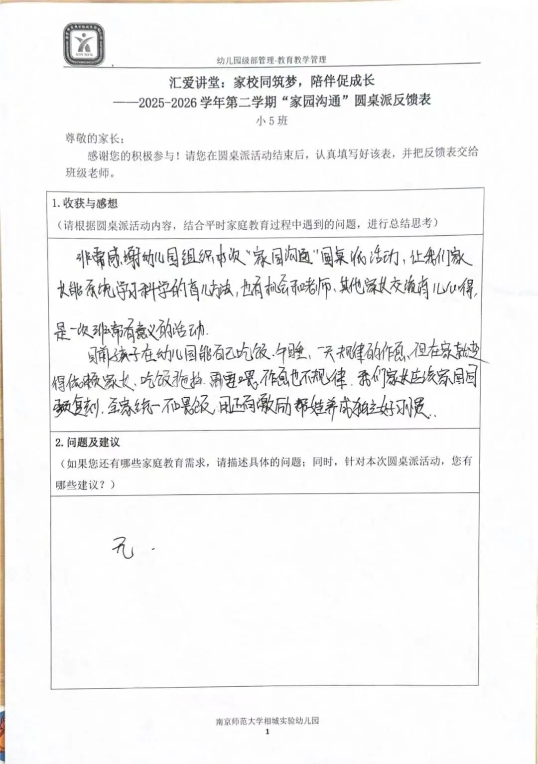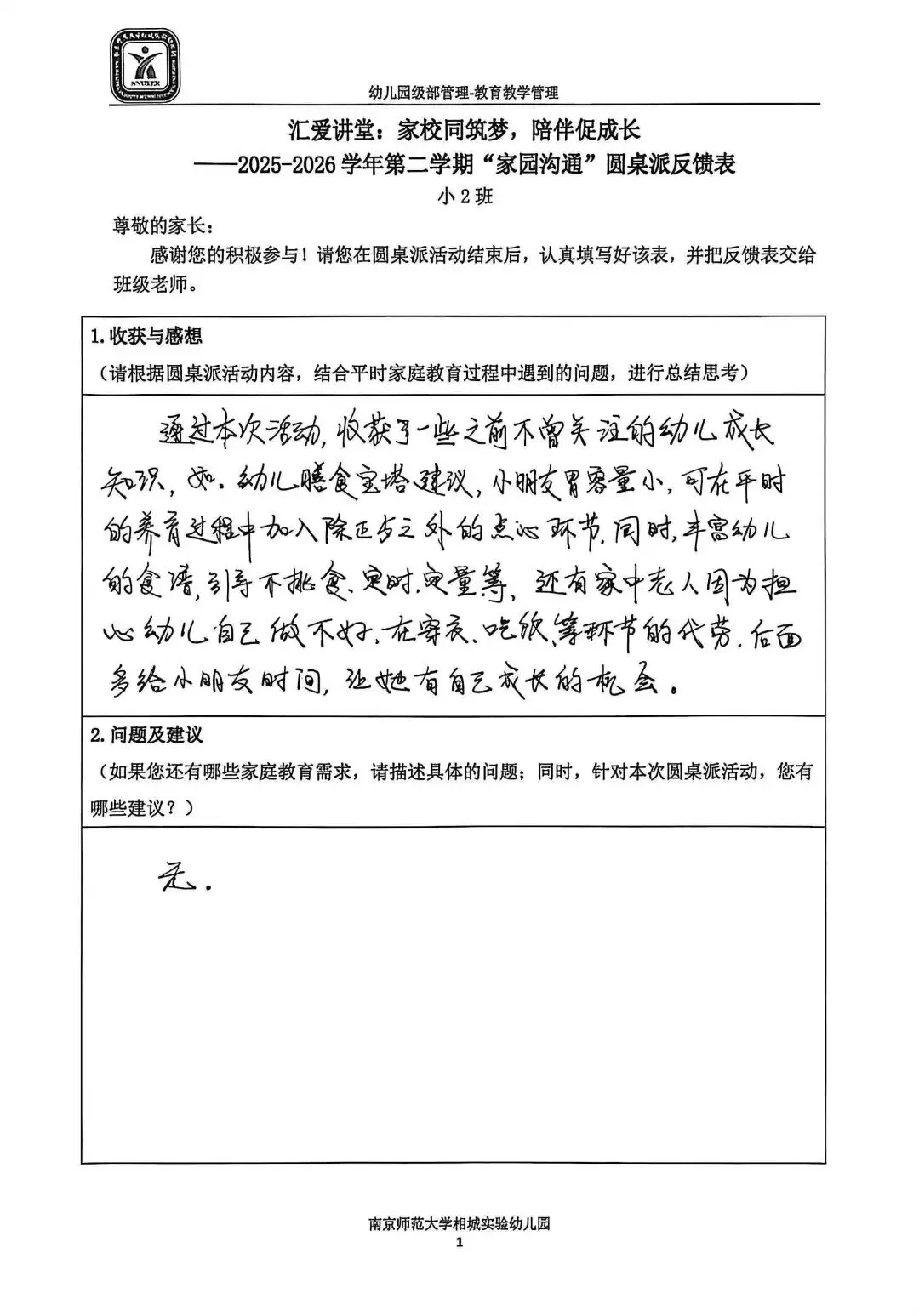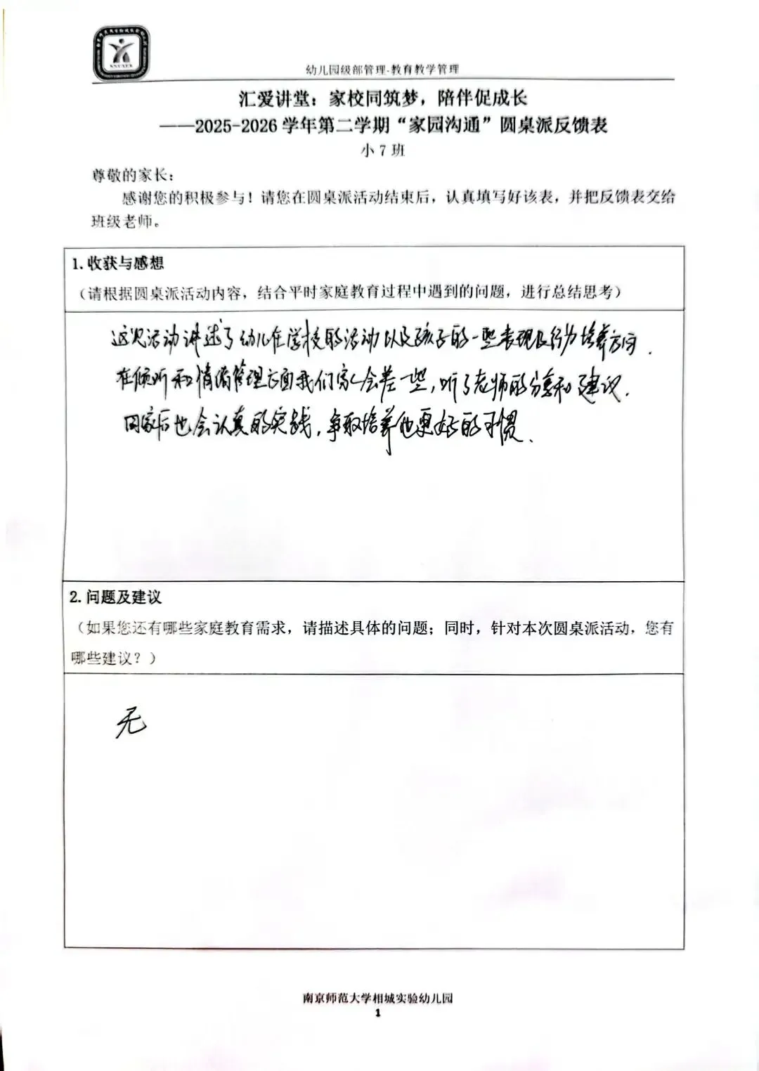 一张小小的反馈表,承载着大大的信任。家长们认真填写,写下的不仅是意见建议,更是对幼儿园工作的支持与认可。