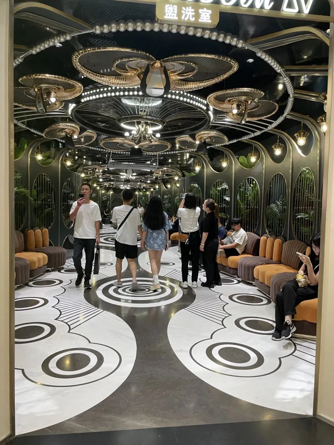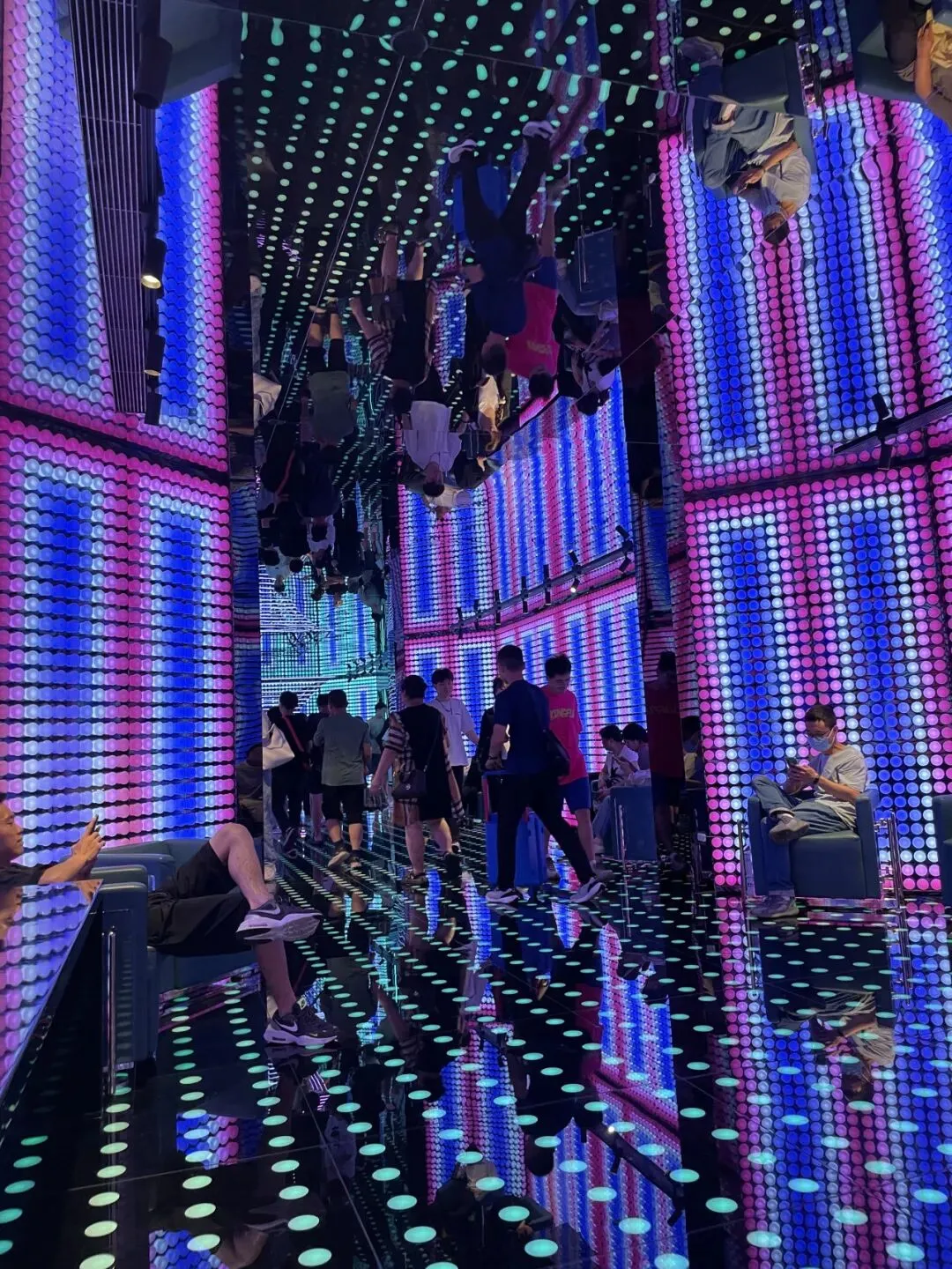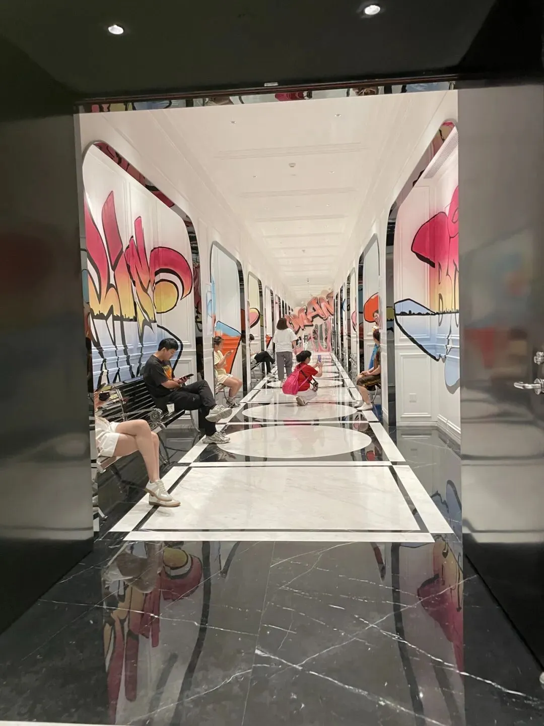 商场分为一期和二期,两边都有漂亮厕所,每个厕所都有一些人在打卡,靠近顶层的人少一些,顶层之前我们去的时候还有艺术展,不得不说是真的挺好看的。